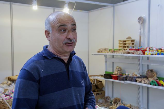 Osmaniye'deki atölyesinde ahşaba el işçiliği ile şekil veren Demirbaş, Bursa'da katıldığı etkinlikte topacın yapım aşamalarını ziyaretçilere tanıttı.