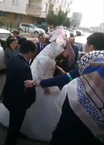 Gelinin başından fındık ve şeker döküldü, damadın eve girişi ise oldukça zorlu oldu.