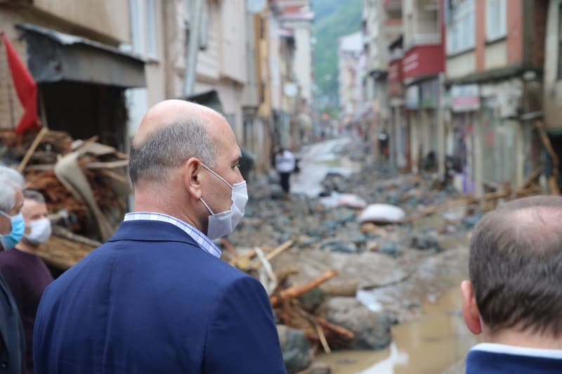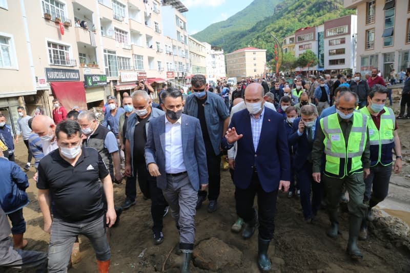 İçişleri Bakanı Süleyman Soylu ile Tarım ve Orman Bakanı Bekir Pakdemirli, selin vurduğu Giresun'un Dereli ilçesinde incelemelerde bulundu. Bakan Soylu, Giresun'daki sel nedeniyle 1'i asker 4 kişinin hayatını kaybettiğini açıkladı. Soylu, 'Şu anda 133 vatandaşımız arama- kurtarma marifetiyle kurtarıldı. Düğün salonunda vatandaşlarımız kurtarılmayı bekliyor. Arama- kurtarma ekipleri ve biz bu çalışmaları sürdürüyoruz. Bunun yanı sıra şu anda 118 köy yolu kapandı. Birçok ilçemiz de bu yağmurdan etkilendi. Etkilenmeyen şimdi köylerde dahil olmak üzere buradaki hasarın ne olduğunu arkadaşlarımızla hep birlikte değerlendiriyoruz. Sayın bakanımız da özellikle öncelikle hep birlikteyiz. Yani her birimiz bir tarafa bakıyoruz, birimiz arama-kurtarma tarafına, diğerimiz meselenin nereden kaynaklanıp, nasıl adım atılacağı konusunda. Biraz sonra da yine Sayın Cumhurbaşkanı'mızın talimatı ile Çevre Şehircilik Bakanı'mız da burada olacak. Buradaki vatandaşımızı yalnız bırakmayacağız, selden afetlerle karşı karşıya kalan vatandaşımızın hep yanında olacağız' dedi.