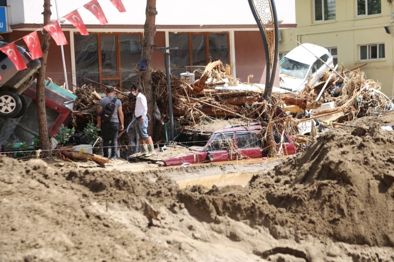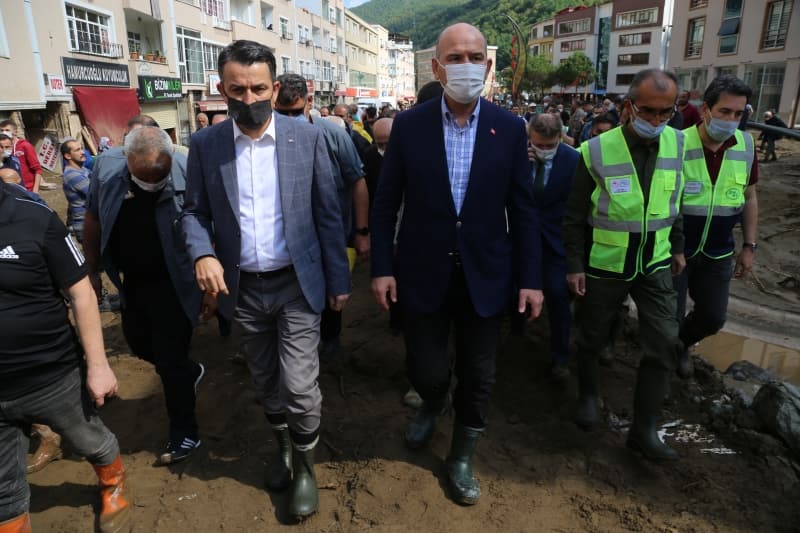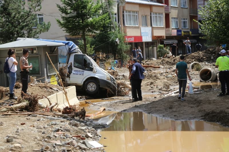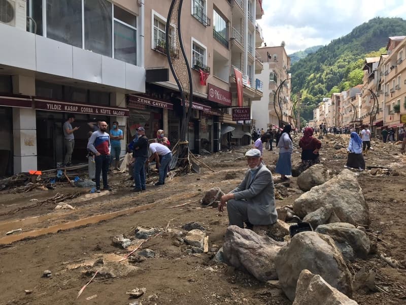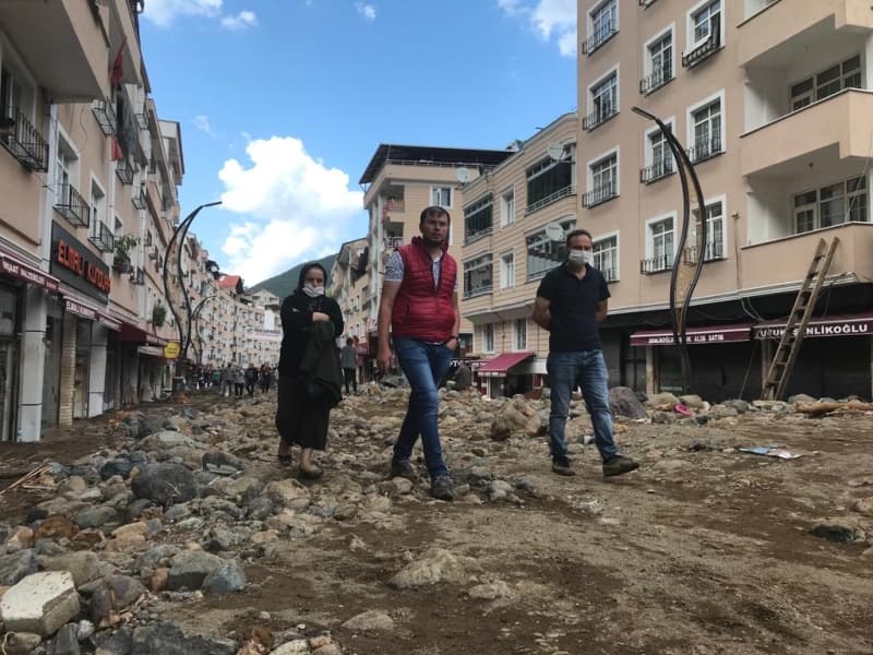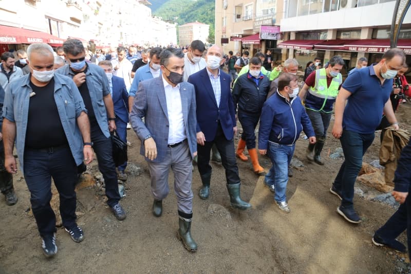 Bakan Pakdemirli ise ilk kez böyle doğal afete tanık olduğunu belirterek, 'Devletin bütün kurumlarıyla buradayız. Birçok afetin içerisinde hep beraberdik bir aradaydık. Ben de ilk defa böyle büyük bir taşkın, böyle büyük bir doğal afet görüyorum. Gerçekten şehrin seviyesi değişmiş durumda. Dün itibarıyla tahmin ediyorum bulunduğumuz seviye 2-3 metre daha aşağıdaydı yol tabelalarını görüyoruz, dükkanları gördük, gerçekten bazıları da seviye neredeyse tavana kadar uzanmış ve rüsubatla dolmuş. Tabi ki öncelikle can kayıpları son derece önemli; üzülerek söylüyorum ki her defasında meteoroloji olarak ciddi uyarılar yapmamıza rağmen vatandaşlarımız 'Nasıl olsa bana bir şey olmaz' diye bir düşünce içerisine giriyorlar. Elbette biz burası ve zarar gören tüm ilçelerimizdeki yerlerle alakalı hem temizlik hem tespit çalışmalarını yapıyoruz' diye konuştu.