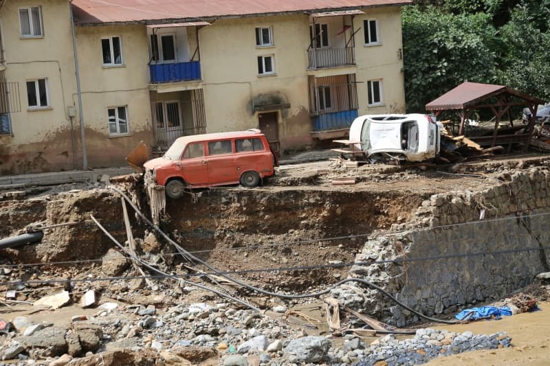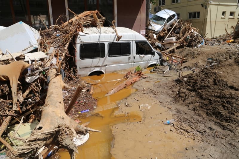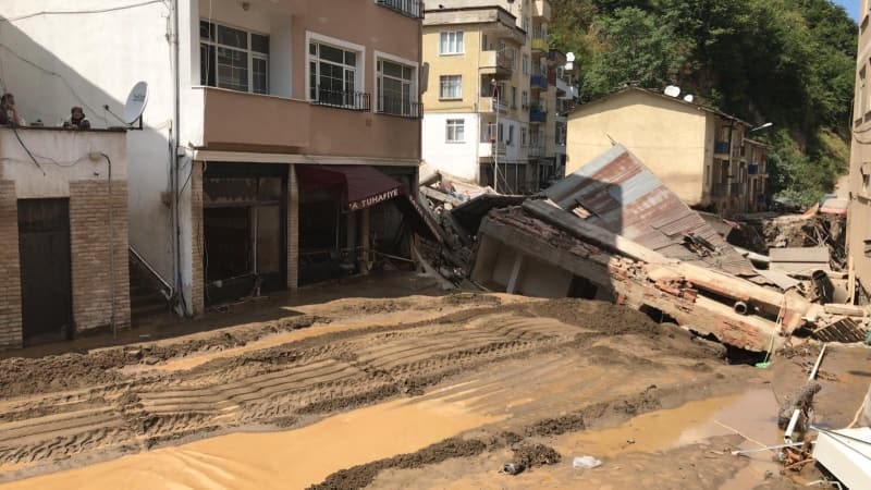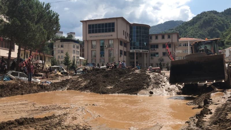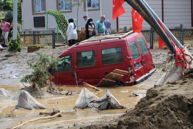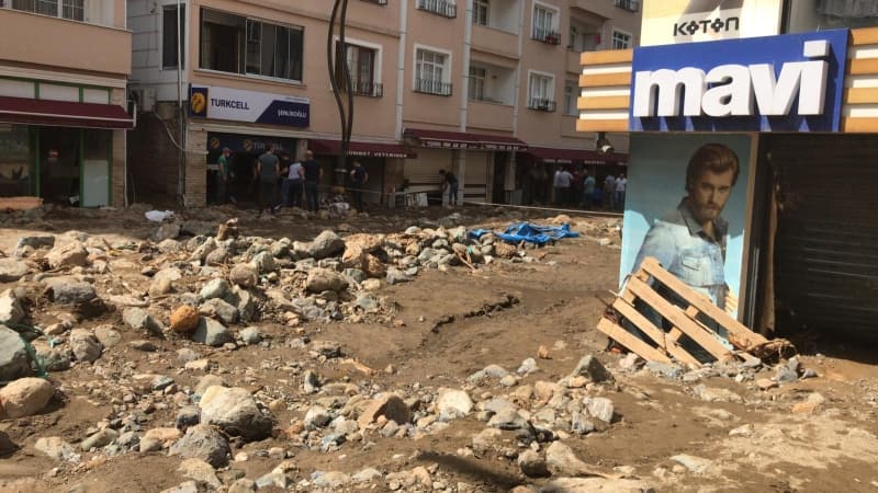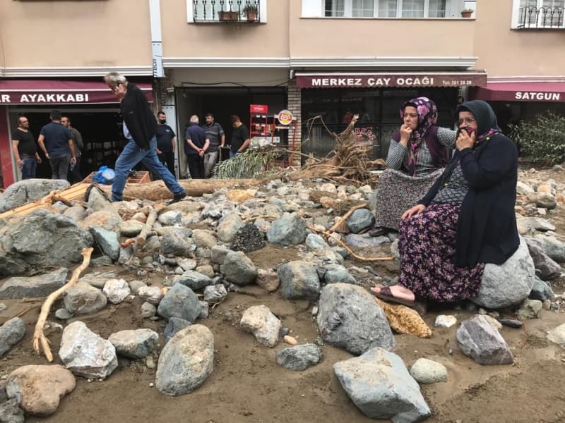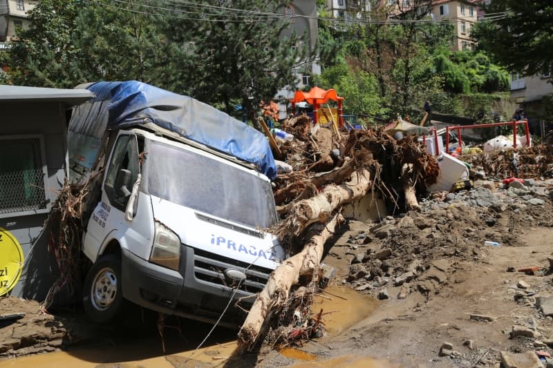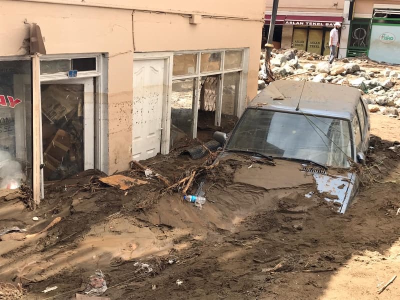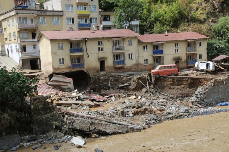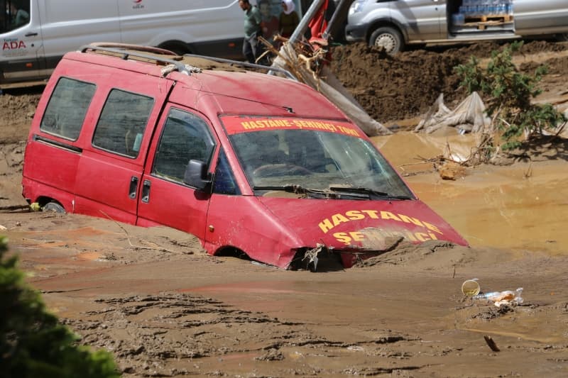 Öte yandan balçık, taş ve ağaç parçalarıyla dolan Dereli ilçesinde afetin boyutu, havadan görüntülendi. İlçe merkezinde yer yer 3 metreye ulaşan balçık nedeniyle iş yerleri ve dükkanlar ağır hasar gördü, sürüklenen araçlar ise toprağa saplandı.