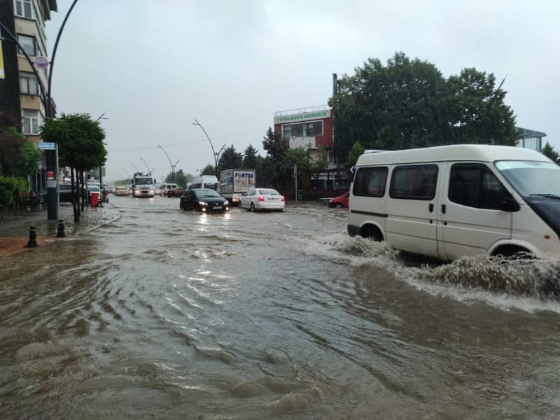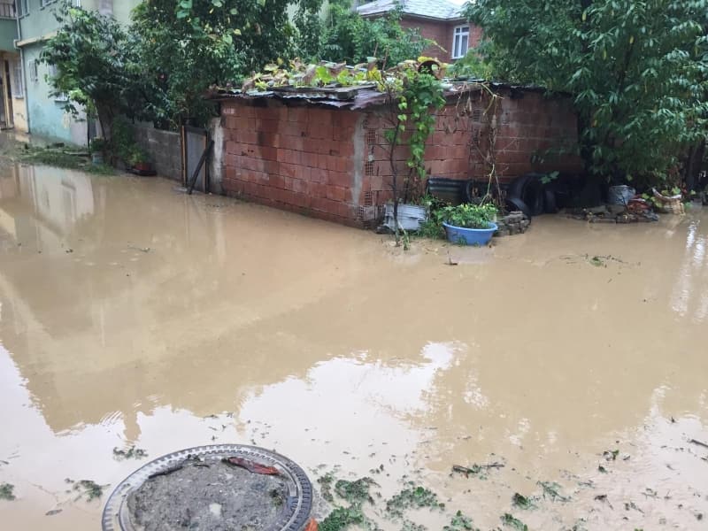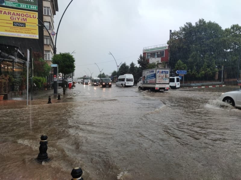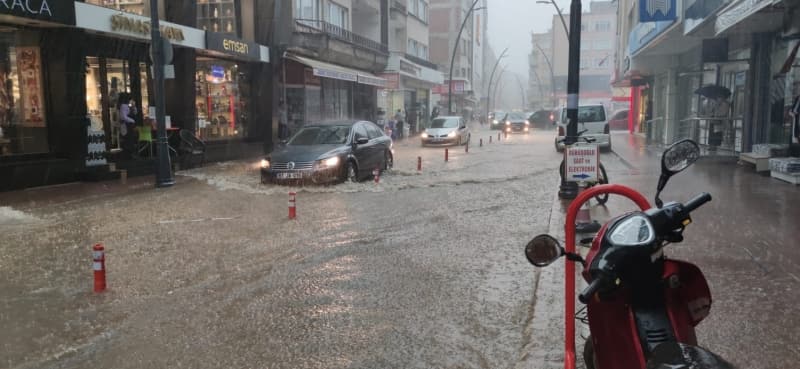 Giresun'un Dereli ilçe merkezinde sağanağın ardından ana yollar, iş yerleri, evler ve araçlar su altında kaldı.