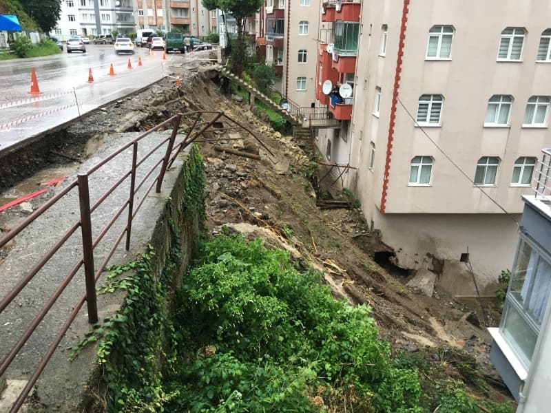 Kentte Gemiler Çekeği Mahallesi Afacan Sokakta yer alan 2 binaya ait istinat duvarı, etkili sağanak yağış sonrası çöktü. Bina önünde park halindeki bir otomobil, yamaçtan kopan toprak yığını altında kalırken, yaşanan anlar ise apartman sakinleri tarafından cep telefonuyla görüntülendi.