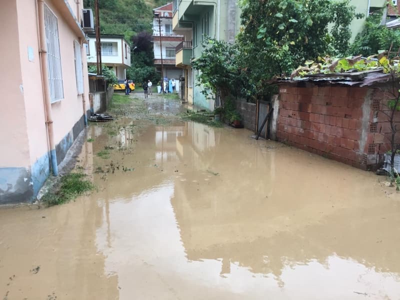 Dereli Kaymakamı Emre Yeşilbaş ise Aksu Deresi'nin taşması sonucu ilçe merkezinde hasar oluştuğunu bildirdi.