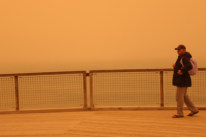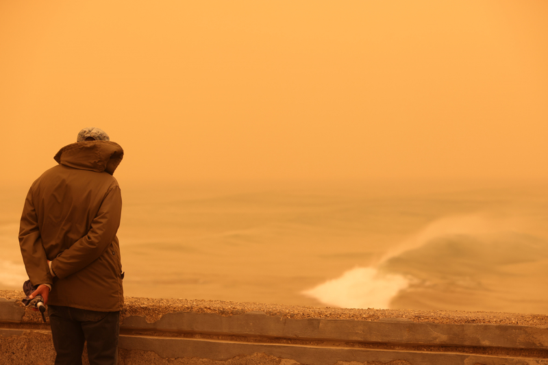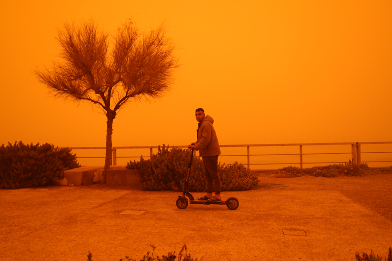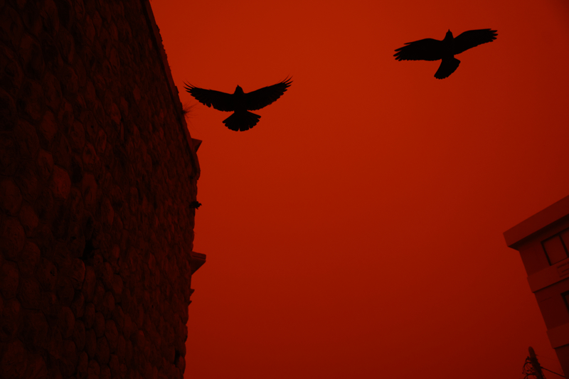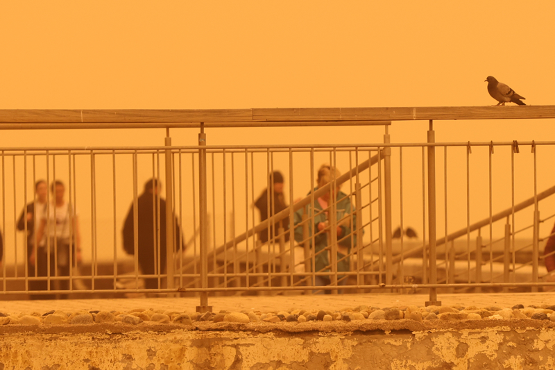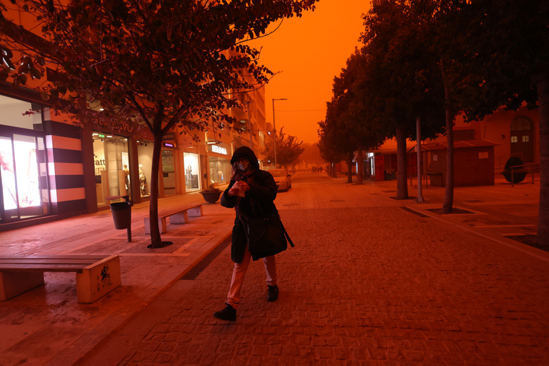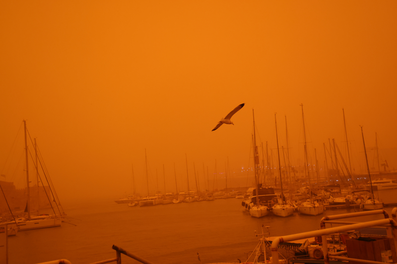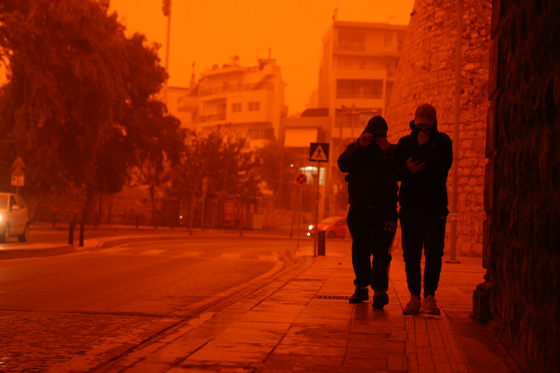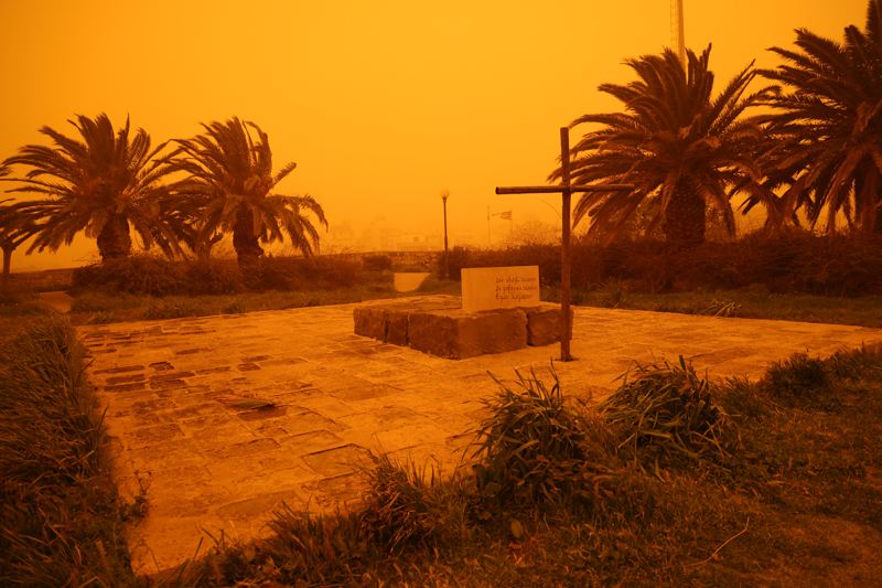 Yunanistan genelindeki kötü hava koşulları devam ederken, Girit Adası'nda gökyüzü Afrika'dan gelen çöl tozu nedeniyle kırmızıya büründü.