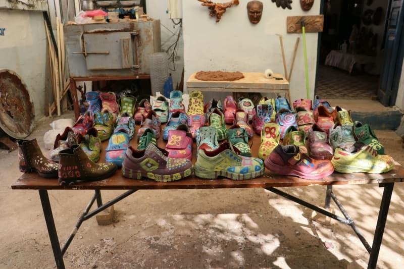 Atık konumundaki ayakkabıları değerlendirdiklerini belirten Kurt, bunları da doğaya renk katması için boyadıklarını ifade etti.