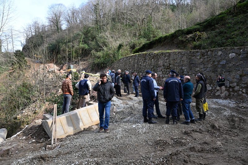 Hayrat Kaymakamı Davut Elmastaş, AA muhabirine, bölgede çalışan 3 işçinin toprak altında kaldığını belirterek, 'Maalesef ekipler işçilerimizden 2'sinin cansız bedenine ulaştı. Diğer işçimizin kurtarılması için çalışmalar devam ediyor.' dedi.