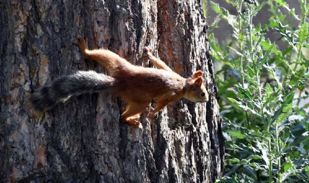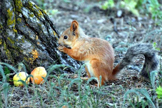 Ondan sonra iki üç günde bir kaysı getiriyoruz. Artık bizden çekinmiyorlar yanımıza kadar gelip kayısıyı aldıktan sonra ağaçların üzerine, kovuklara çıkıp yemeye başladılar.' ifadelerini kullandı. Kayısıları yerden alıp kaçan sincaplar, ağaç dallarında karınlarını doyurmanın keyfini yaşadı.