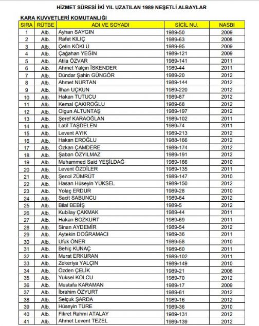 Görev süresi uzatılan ve terfi ettirilen komutanların tam listesi