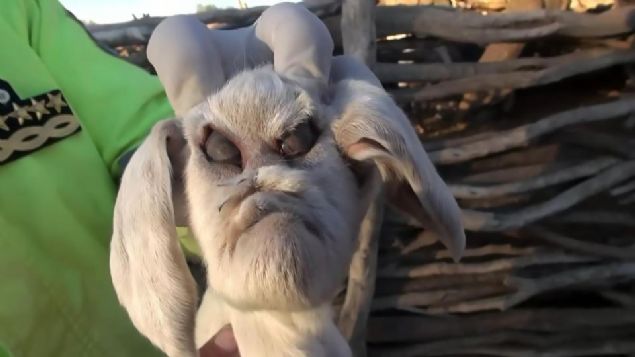 Arjantin'in San Luis kentinde bir çiftlikte çıkıntılı gözleriyle insanı andıran bir keçi doğdu. Görenleri şaşkına çeviren insan görünümlü keçi, doğumunun ardından sadece üç saat hayatta kalabildi. İşte o keçinin birbirinden ilginç fotoğrafları....