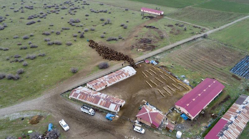 'Görüyorsunuz burada 700-800 koyun var. İkindi namazından sonra bu kuzuları ayırıyoruz. Ayrı bir barınakta tutup, sabahları tekrar buluşturuyoruz. 10 kat daha kalabalık olsun kuzular bırakıldığında hepsi birer birer annesiyle buluşuyor. Hiçbir sıkıntı olmuyor. En geç 15 dakika içinde bütün kuzular annesiyle buluşuyor. Gece ayrılan koyun ve kuzuları rahat bir şekilde dinleniyor. Bu dönemde süt üretimi yapmıyoruz. Mayısın ortasında süt üretimine başlıyoruz. Kuzular şu anda çok küçük olduğu için yemle beslenemiyor.'