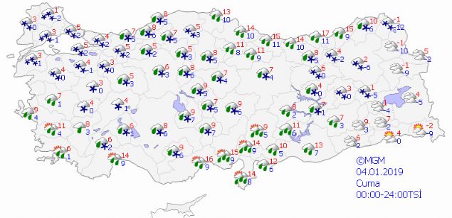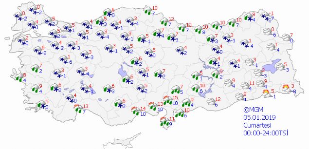 DOĞU'DA BUZLANMA, DON VE ÇIĞ UYARISI: Doğu Anadolu Bölgesi'ndeki 4 il için buzlanma, don ve çığ uyarısı yapıldı. Meteoroloji 14. Bölge Müdürlüğünden yapılan açıklamaya göre, bölge genelinde hava çok bulutlu, Muş ve Bitlis çevrelerinin aralıklı kar yağışı olacak.