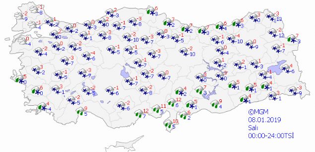 BUGÜN KAR OLAN İLLER : İstanbul, Edirne, Tekirdağ, Kırklareli, Çanakkale, Balıkesir, Bursa, Yalova, Bilecek, Sakarya, Kocaeli, Bolu, Eskişehir, Afyonkarahisar, Sivas, Erzincan, Gümüşhane, Erzurum, Bayburt, Bingöl ve Ardahan.