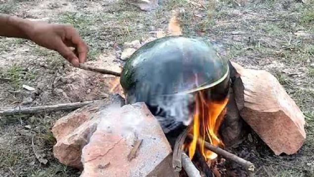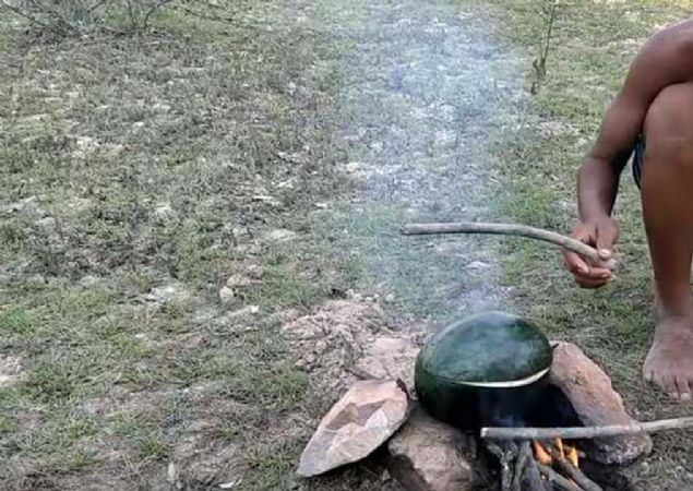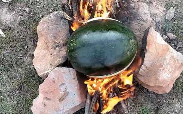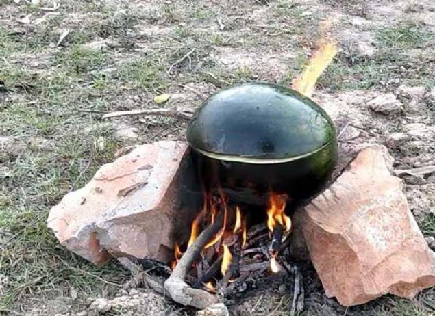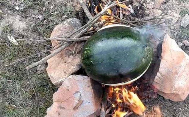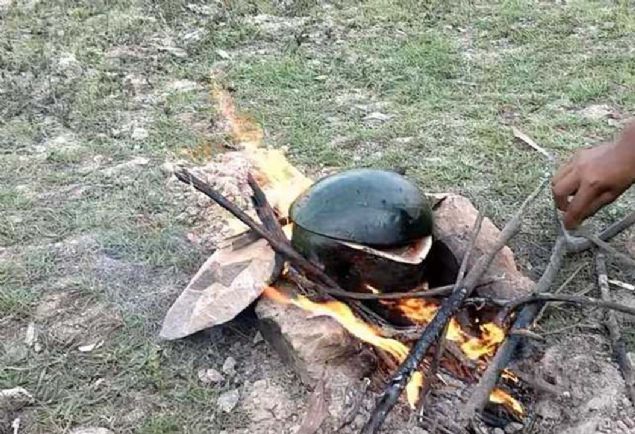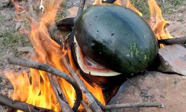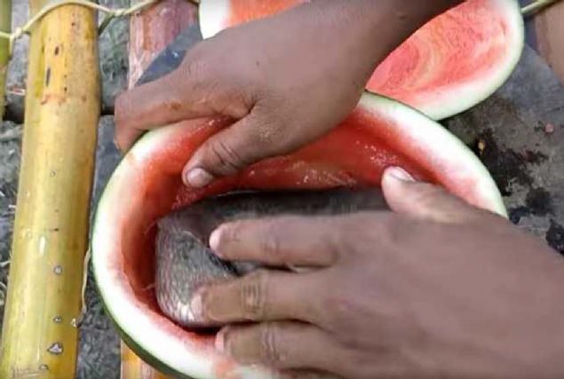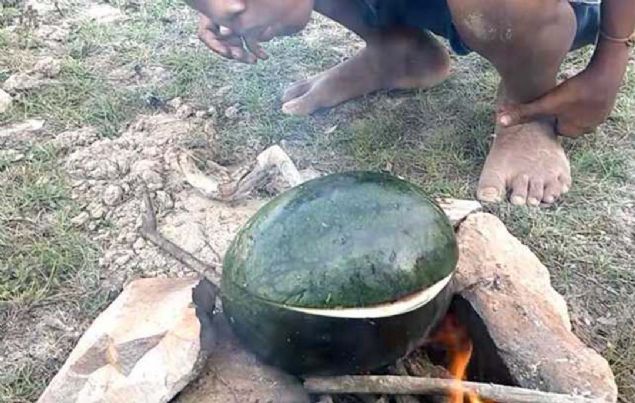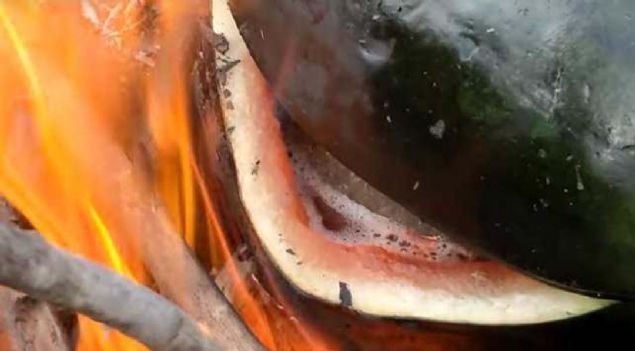 Herkesi şaşırtan yöntem! Karpuzun içinde pişirdi...