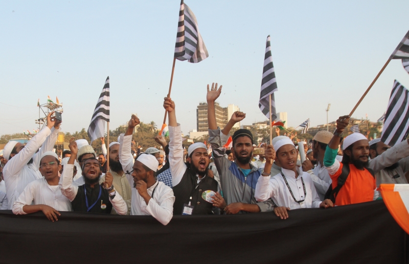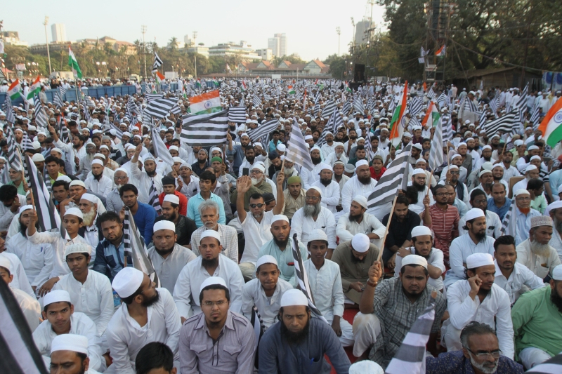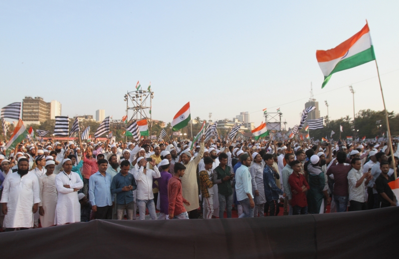 Hindistan'ın Mumbai kentinde toplanan Müslümanlar, Hindistan'ın Ulusal Vatandaşlık Sicili (NRC) ve Ulusal Nüfus Sicili (NPR) uygulamaları ile Vatandaşlık Yasası'ndaki değişikliği (CAA) protesto etti.