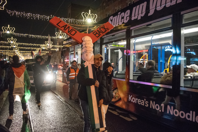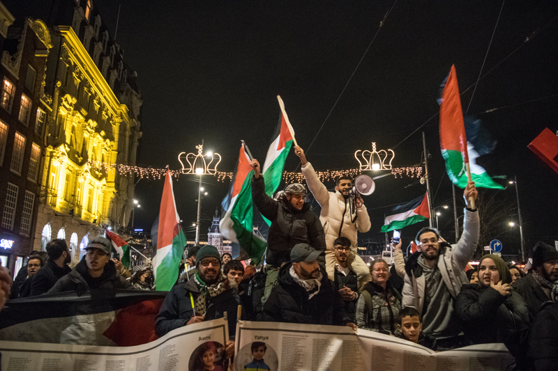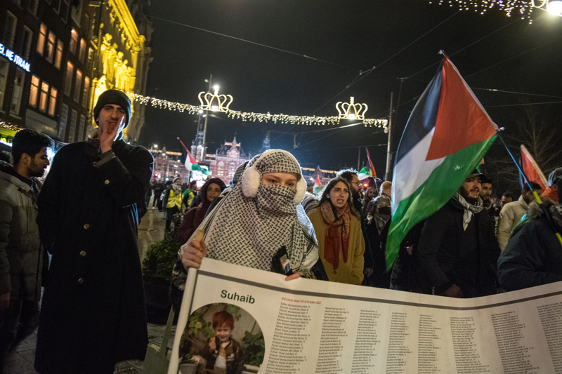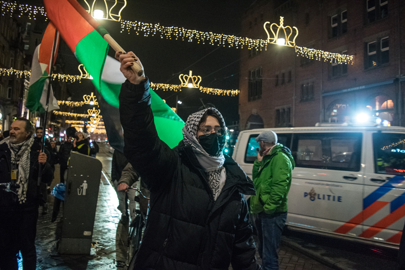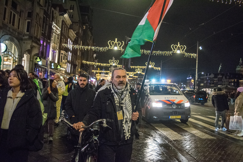 Hollanda'nın başkenti Amsterdam'da Noel Arifesinde bir araya gelen göstericiler, Filistin'e destek amacıyla yürüyüş gerçekleştirdi.