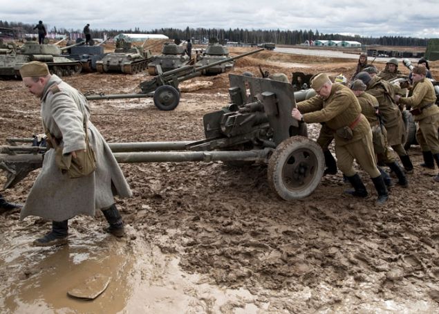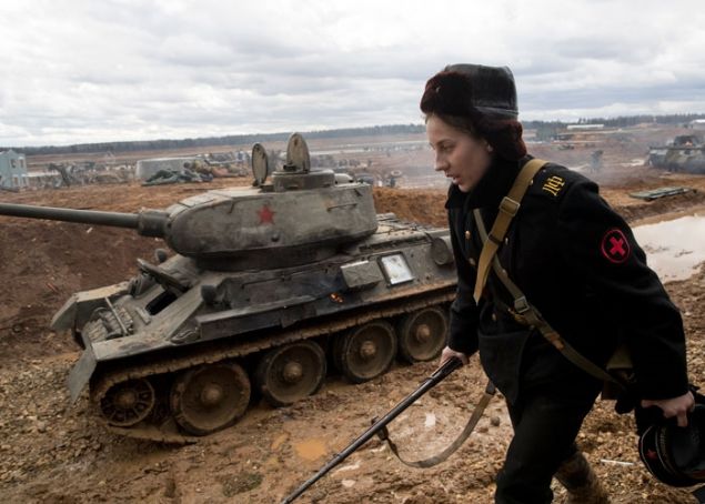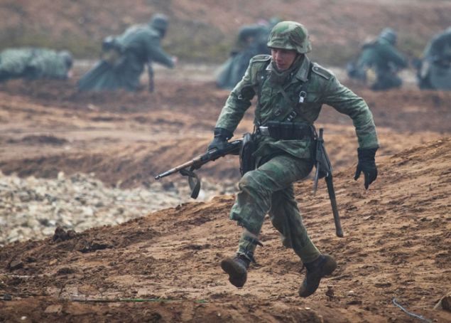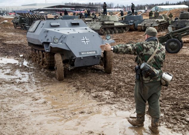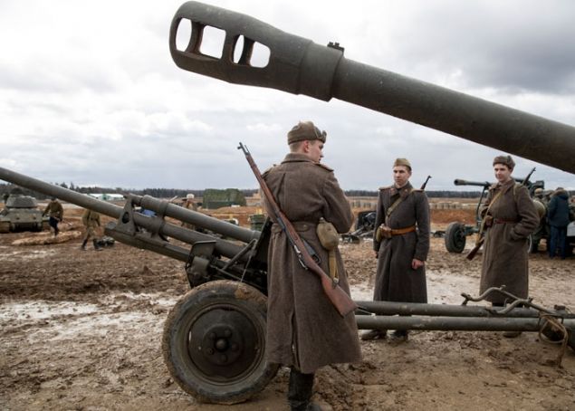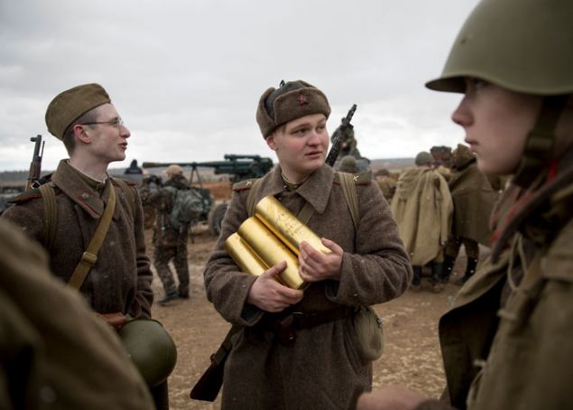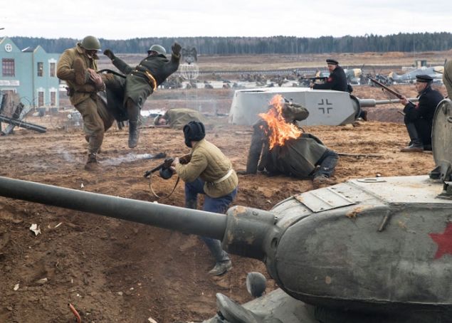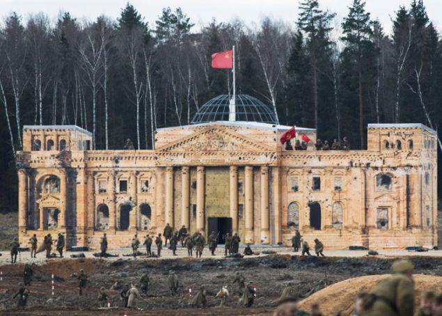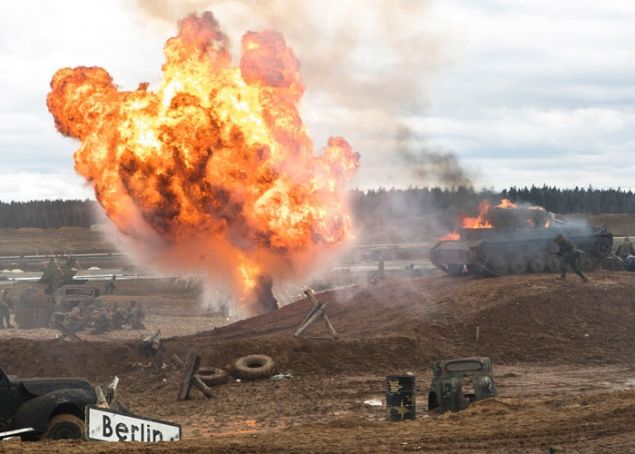 Rusya Savunma Bakanlığı tarafından finanse edilen gösteride Berlin olarak tasvir edilen bölgede Nazi rejimine vurulan son darbelerden biri canlandırıldı.
