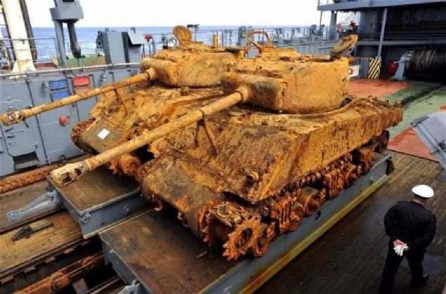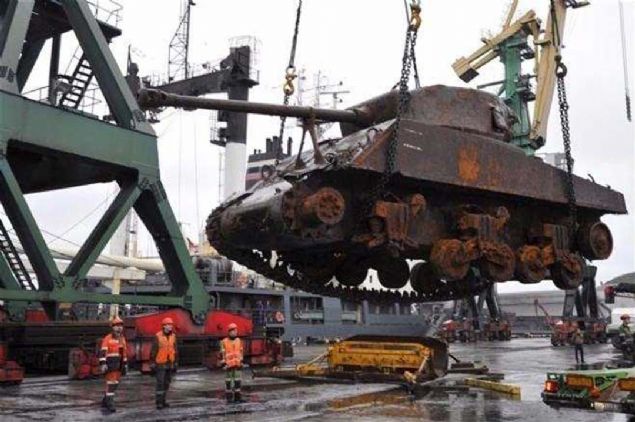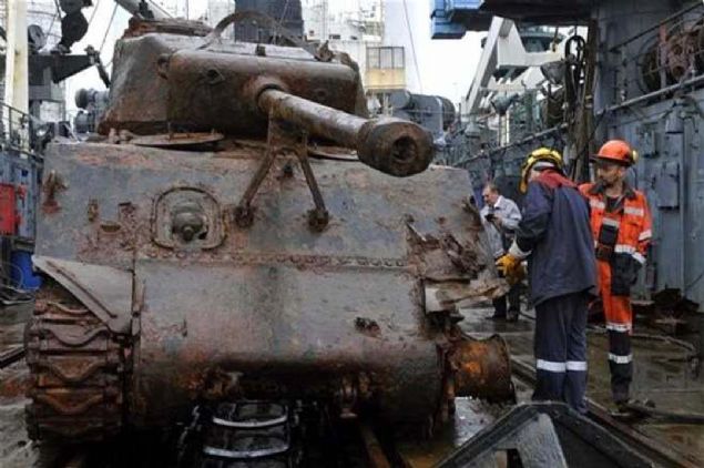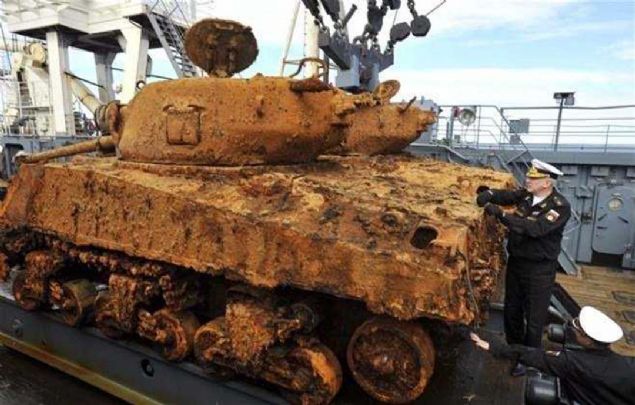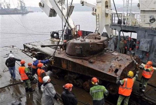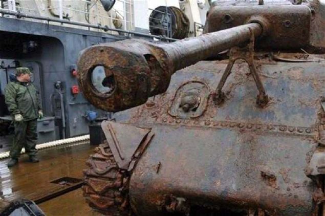 Rus Kuzey Filosu'na bağlı arama ve kurtarma ekibinde görev yapan askeri uzmanlar, Barents Denizi'nin dibinden İkinci Dünya Savaşı döneminden kalma ABD yapımı iki Sherman tankını karaya çıkardı.