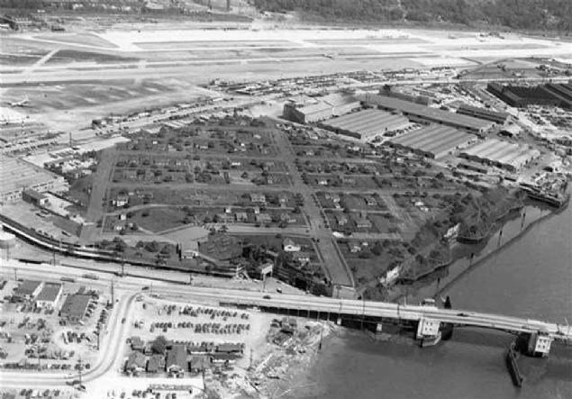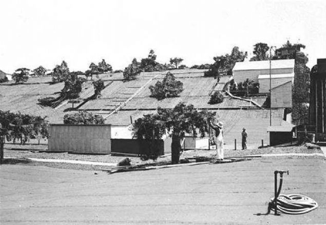 Aynı filmlerde olduğu gibi uçak fabrikasının çatısı bir mahalle görüntüsü kazandırıldı.
