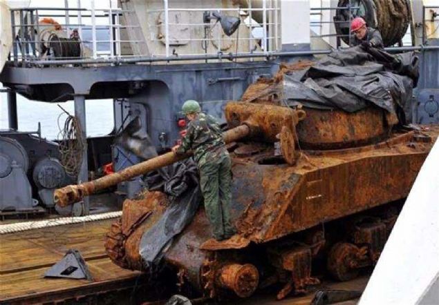 Rus Kuzey Filosu'na bağlı arama ve kurtarma ekibinde görev yapan askeri uzmanlar, Barents Denizi'nin dibinden 2. Dünya Savaşı döneminden kalma ABD yapımı iki Sherman tankını karaya çıkardı.