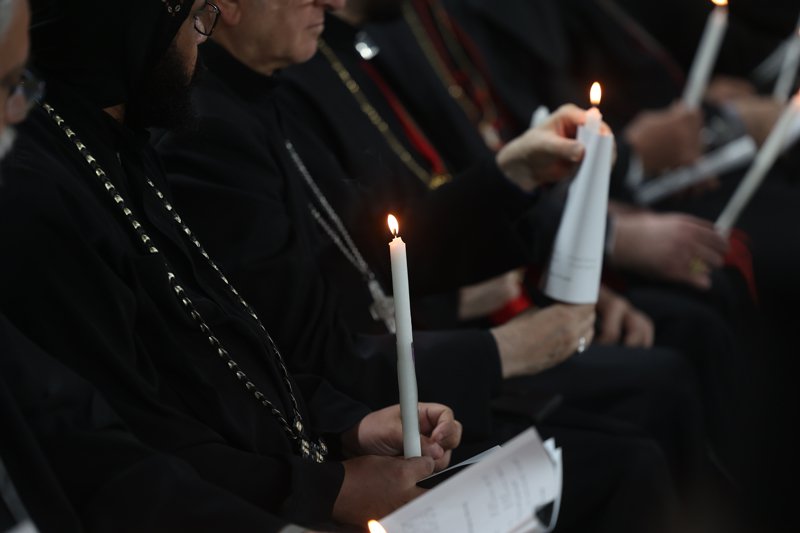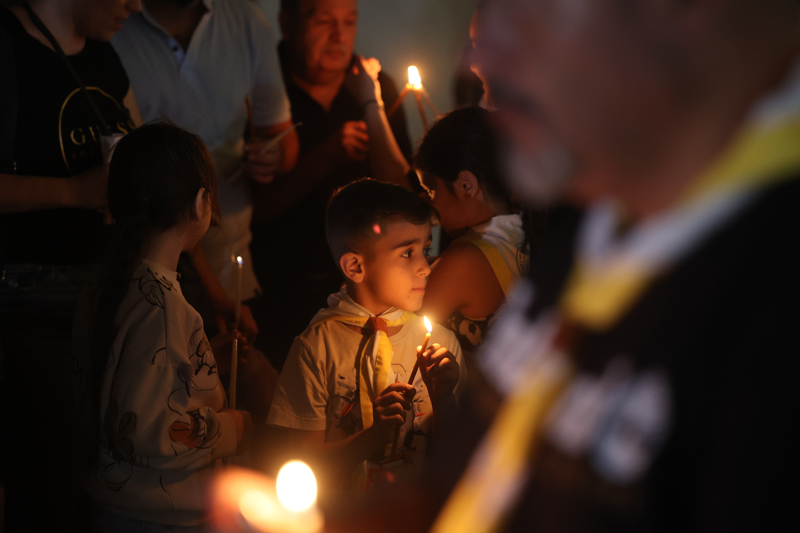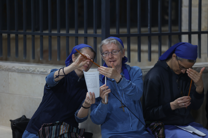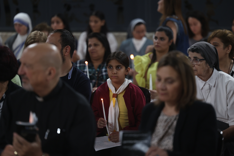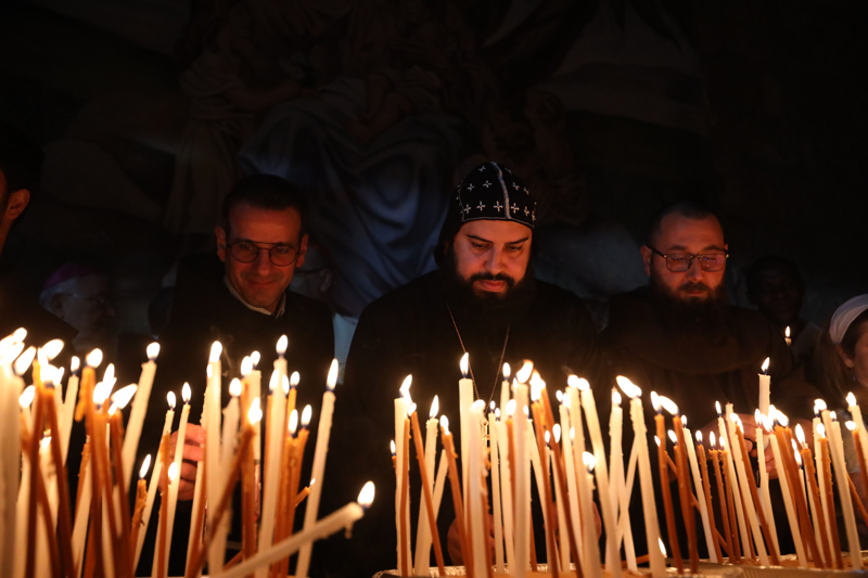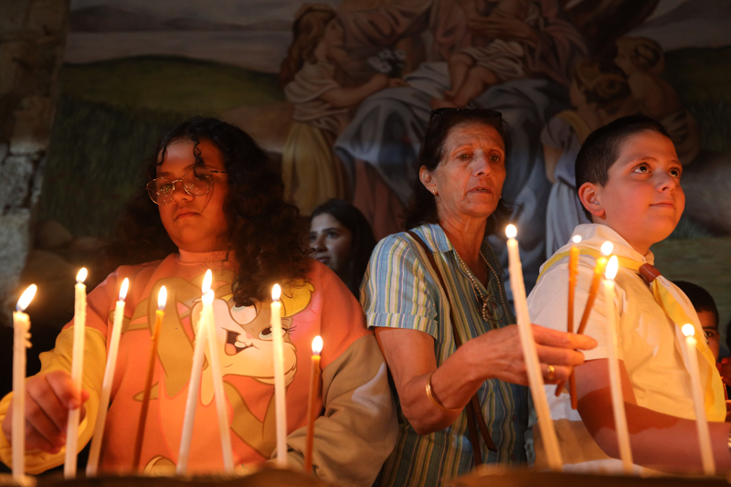 Kudüs'ün Eski Şehri'nde bulunan Terra Sancta okulu avlusunda bir araya gelen Hristiyan cemaatleri mensupları Gazze'deki savaşın durması ve bugün çıkan olaylarda 15 Filistinlinin hayatını kaybettiği Batı Şeria'daki işgalin sona ermesi için dua ederek mum yaktı.