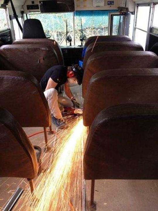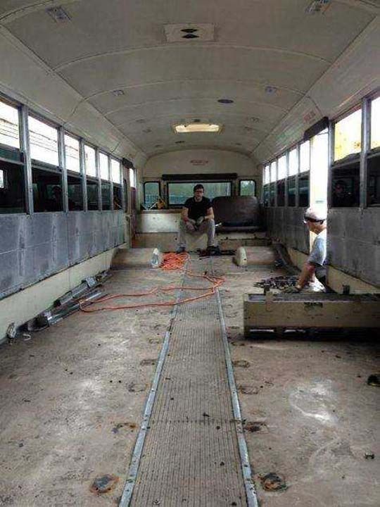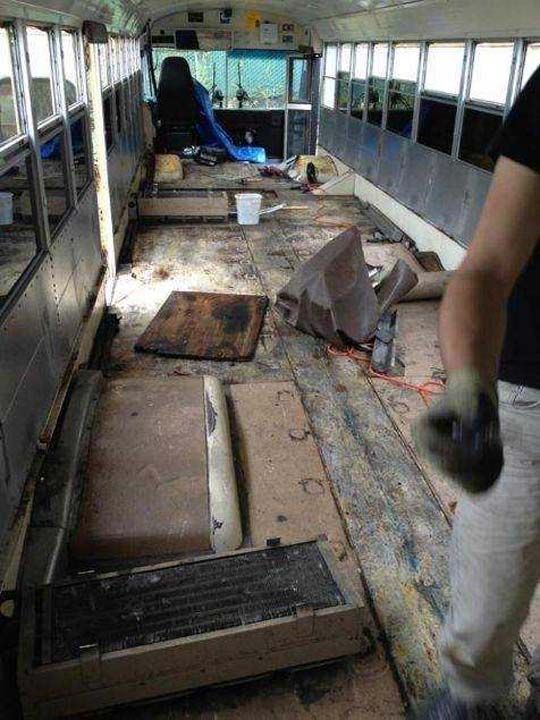 2800 dolara aldıkları hurdalık otobüsü yeni baştan yaptılar.