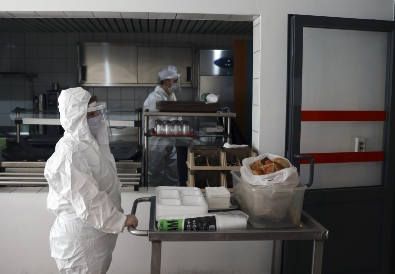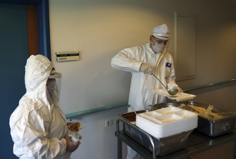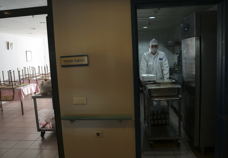 Restoran ve kafeteryaların kapalı olduğu huzurevinde, dışarıdan yemek girişine izin verilmiyor. Yemekhanede hazırlanan yemekler, yaşlılara odalarında, tek kullanımlık tabaklarda servis ediliyor.