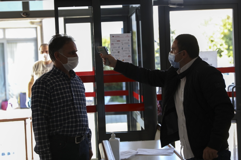 Göreve başlayacak her personel de öncelikle dezenfekte olup, ateş ölçümleri yapıldıktan sonra içeri alınıyor.