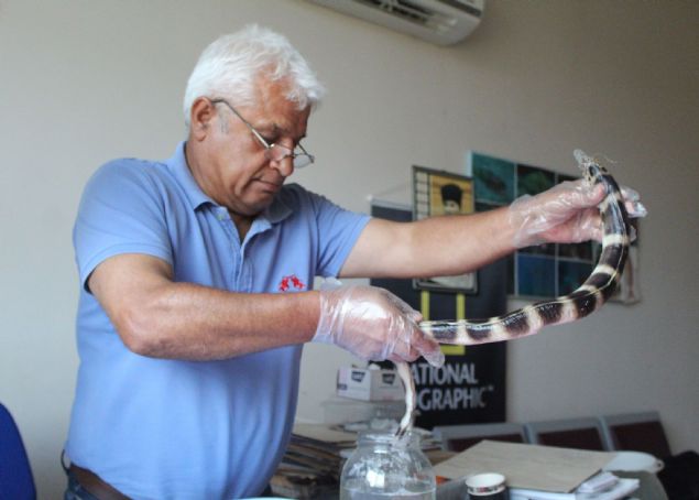 Prof. Dr. Gökoğlu, balıkçıların, görüntüsü ve renkleri nedeniyle farklı bir tür olduğunu düşünerek kendilerine ulaştırdığı balığın, Antalya'da ilk kez görülen 'pisodonophis semicinctus' türü olduğunu belirlediklerini vurguladı.
