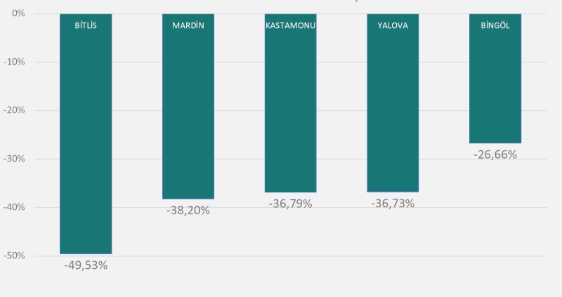 Van (13,92), Yalova (74,62), Yozgat (37,70), Zonguldak (54,30).'