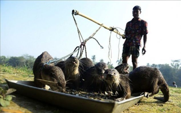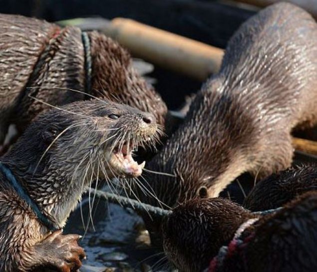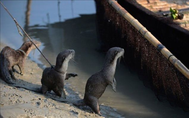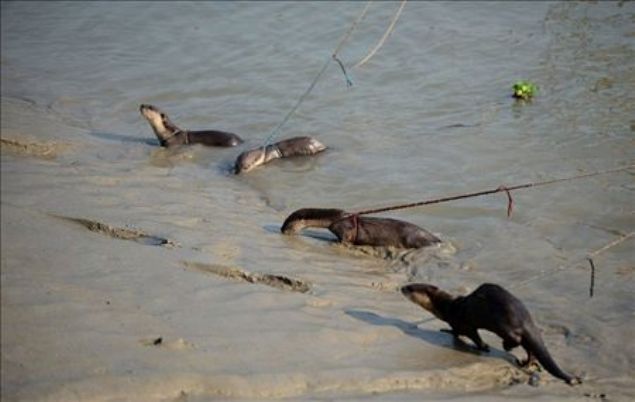 Eğitilen hayvanlar balıkları ürkütürek ağlara doğru yönlendiriyor.