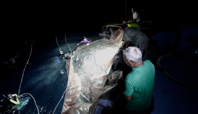 Yaklaşık 1 ton ağırlığında dev balık böyle görüntülendi..