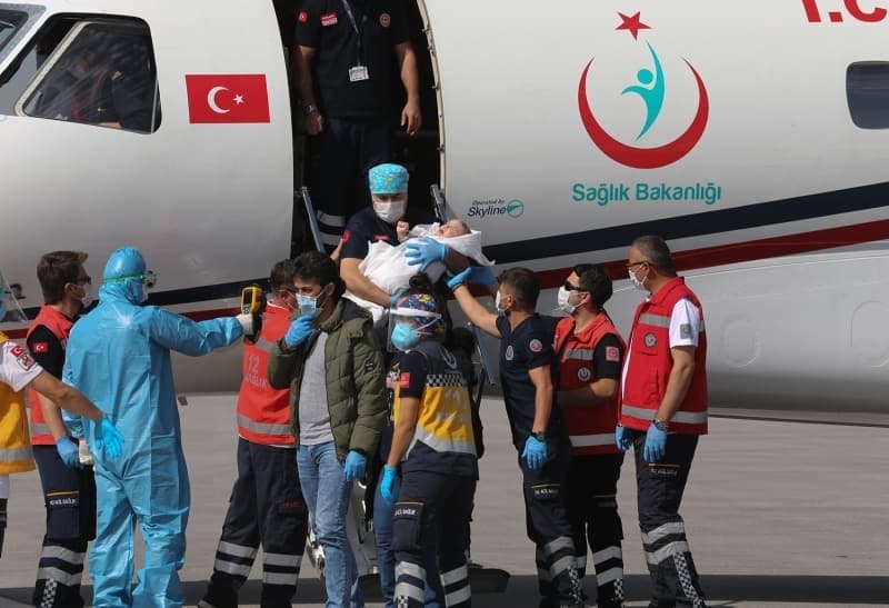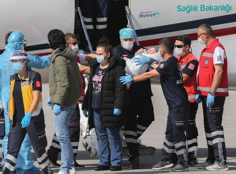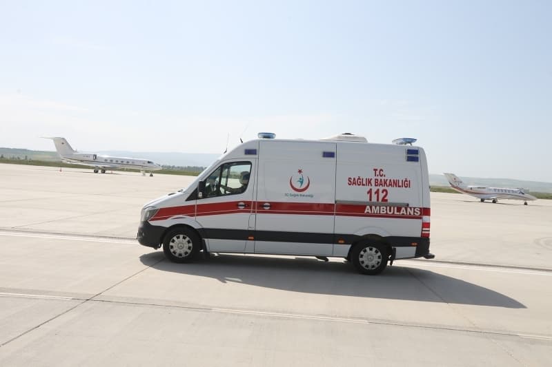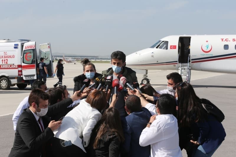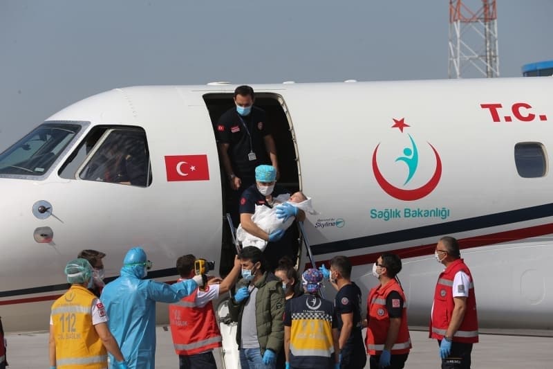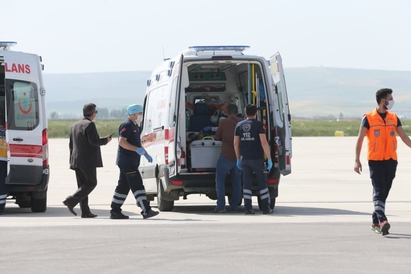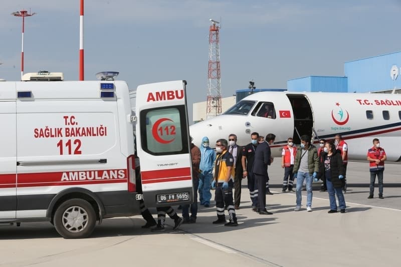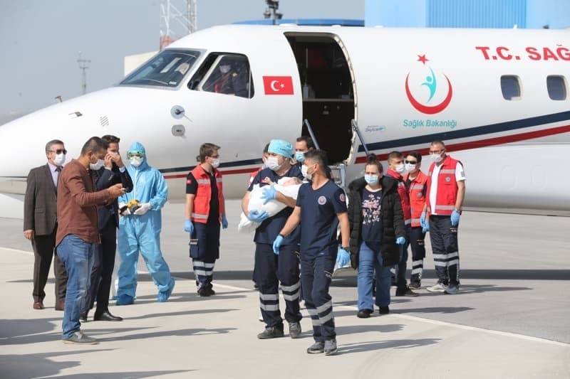 Londra'nın Luton Havalimanı'ndan kalkan, siyam ikizleri Derman ve Yiğit ile anneleri Fatma ve babaları Ömer Evrensel'i taşıyan Sağlık Bakanlığına ait hava ambulansı, sabah saatlerinde Esenboğa Havaalanı'na iniş yaptı.