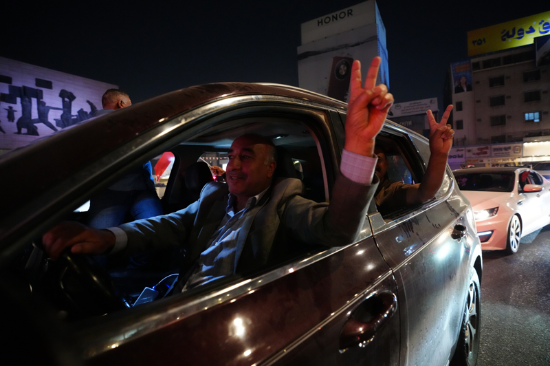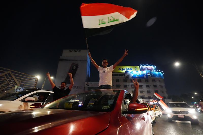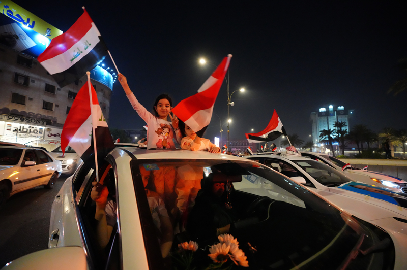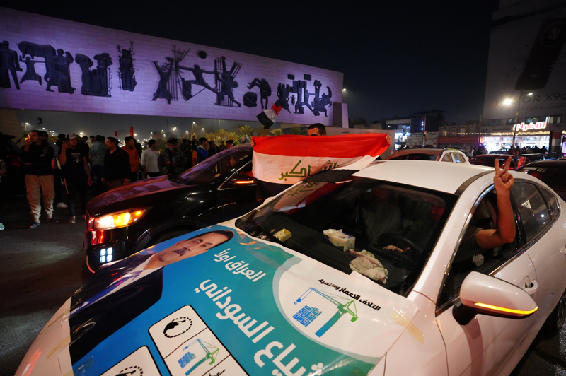 Sonuçların açıklanmasının ardından başkent Bağdat'ta İmar ve Kalkınma Koalisyonu destekçileri, araçlarıyla tur atarak kutlama yaptı.