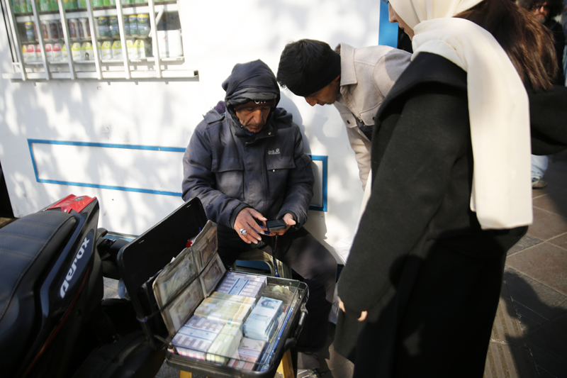 Başkent Tahran'da döviz büroları yanı sıra seyyar dövizcilerde rastlamak mümkün.