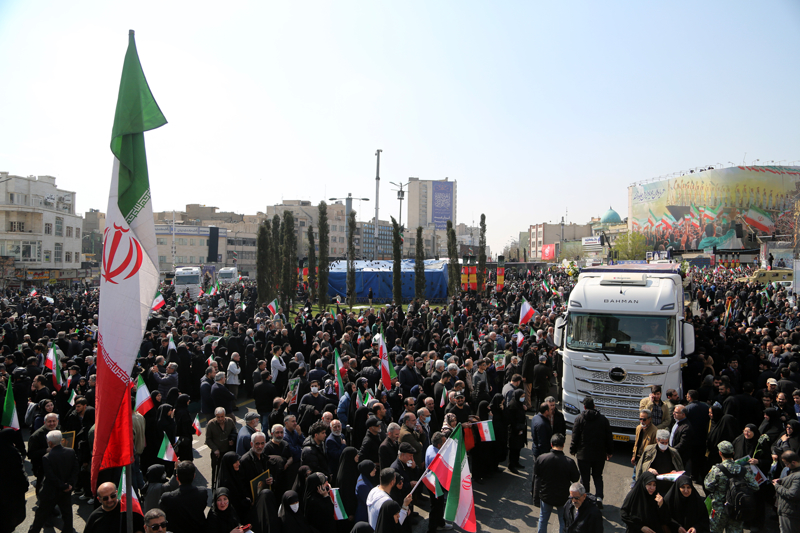 İsrail saldırısında hayatını kaybeden İran Ulusal Yüksek Konseyi Genel Sekreteri Ali Laricani, Devrim Muhafızları Ordusu'na bağlı Besic gücü komutanı Gulam Rıza Süleymani ve ABD saldırısında ölen İran Deniz Kuvvetleri'nde görevli 84 asker için başkent Tahran'da cenaze töreni yapıldı.