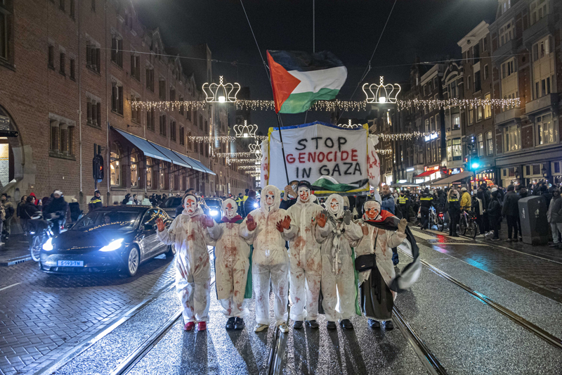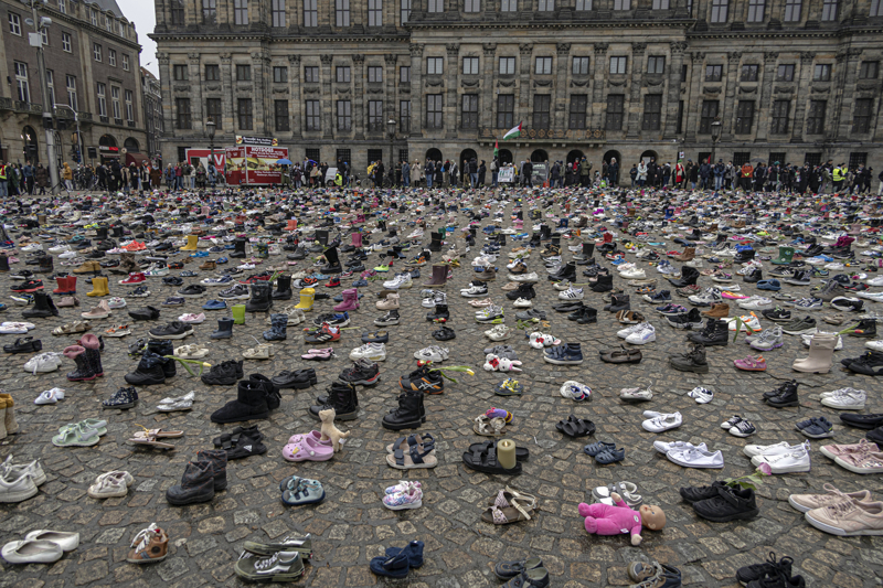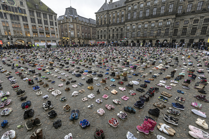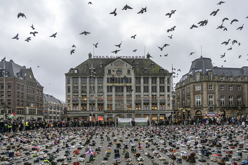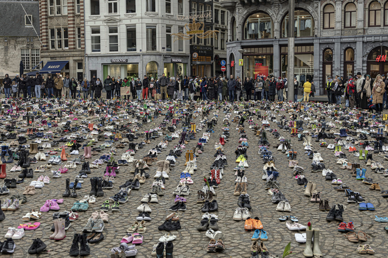 Hollanda'nın başkenti Amsterdam'da yüzlerce kişi, Filistin'e destek amacıyla yürüyüş gerçekleştirdi. İsrail'in Gazze'deki saldırılarını protesto etmek isteyen yüzlerce kişi, Müzeler Meydanı'nda toplandı. İsrail saldırılarında öldürülen Filistinli çocuklar için Dam Meydanı'na binlerce çift ayakkabı bırakıldı.