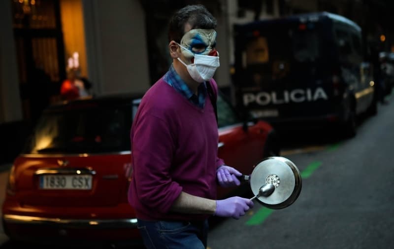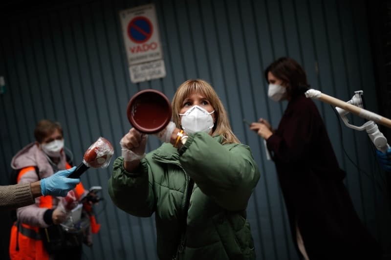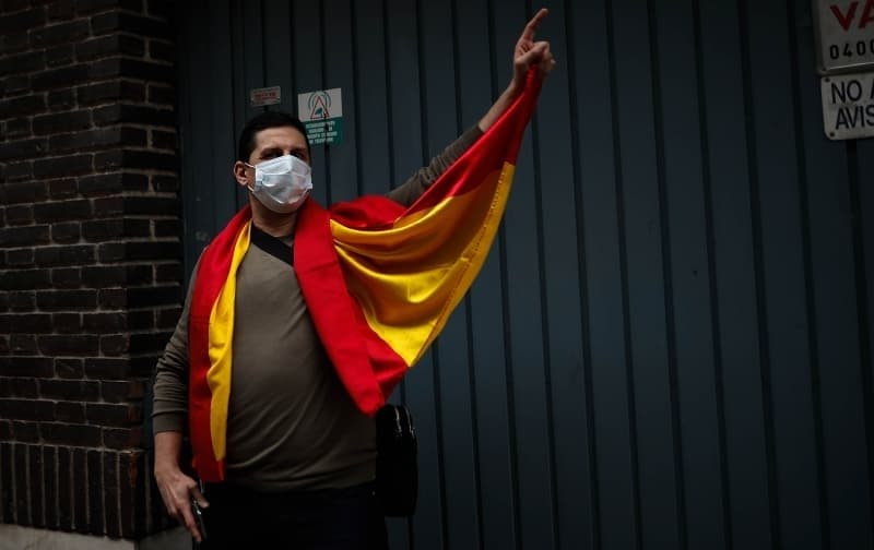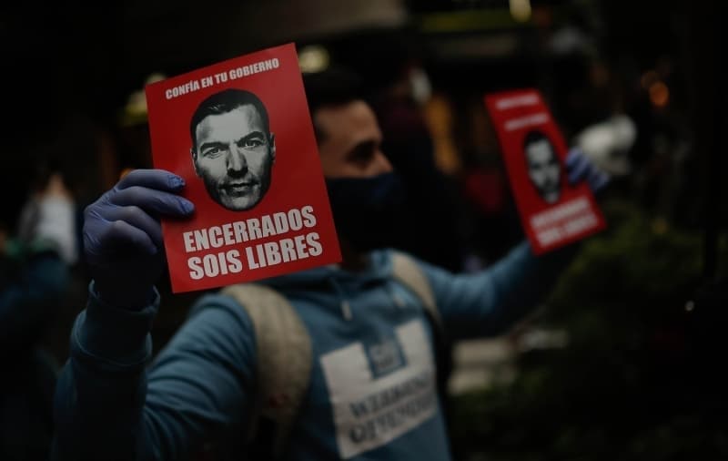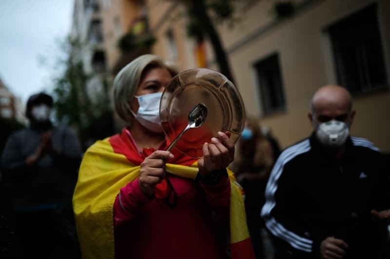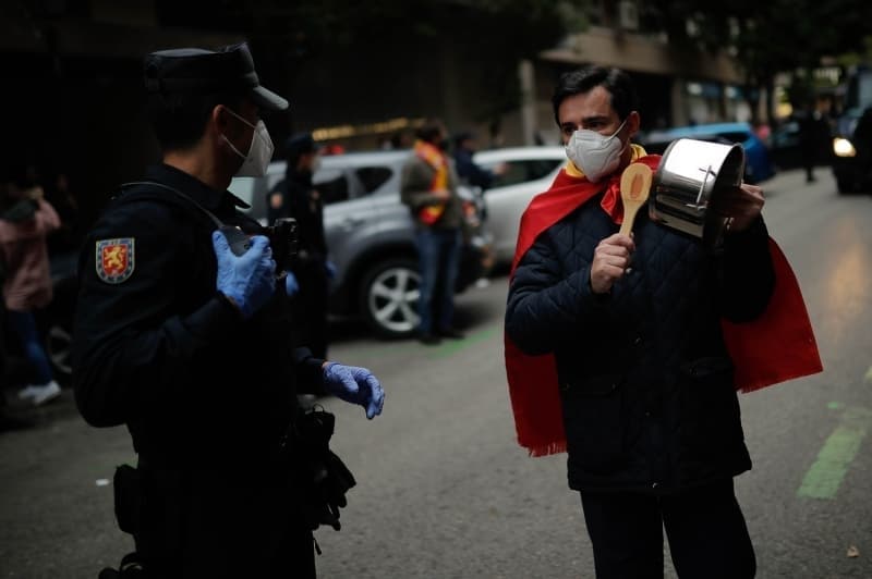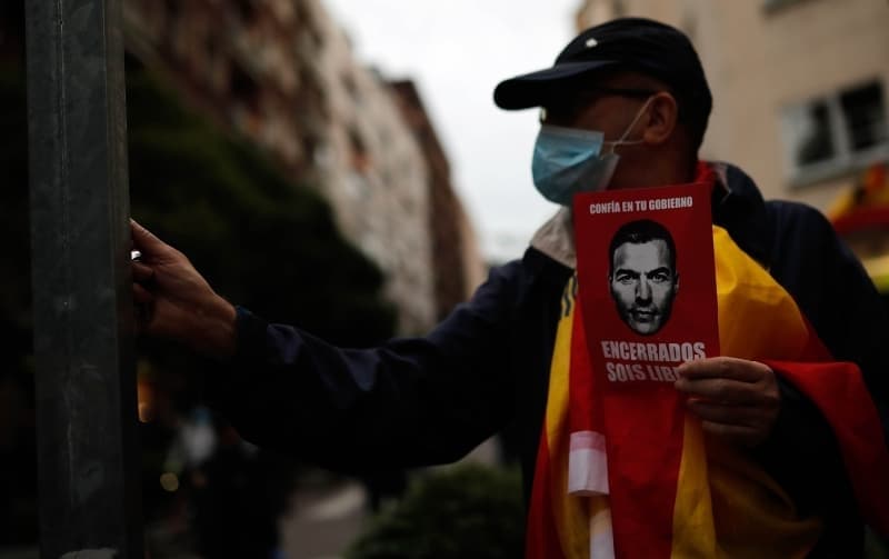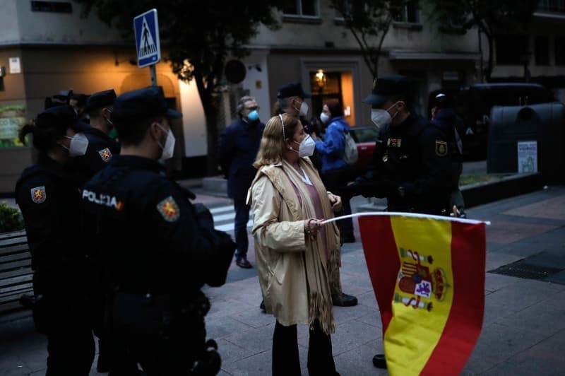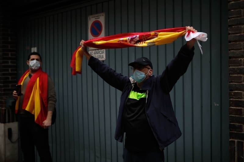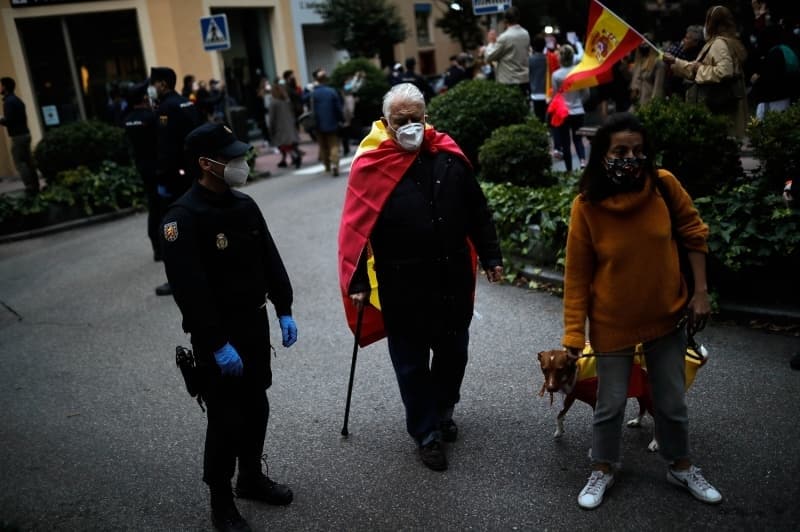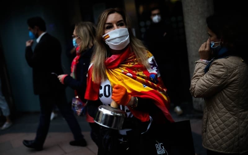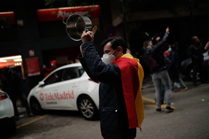 İspanya'nın başkenti Madrid'de hükümetin yeni tip koronavirüs (Kovid-19) salgını politikasını eleştiren vatandaşlar, gösteri düzenledi.