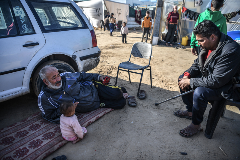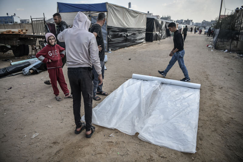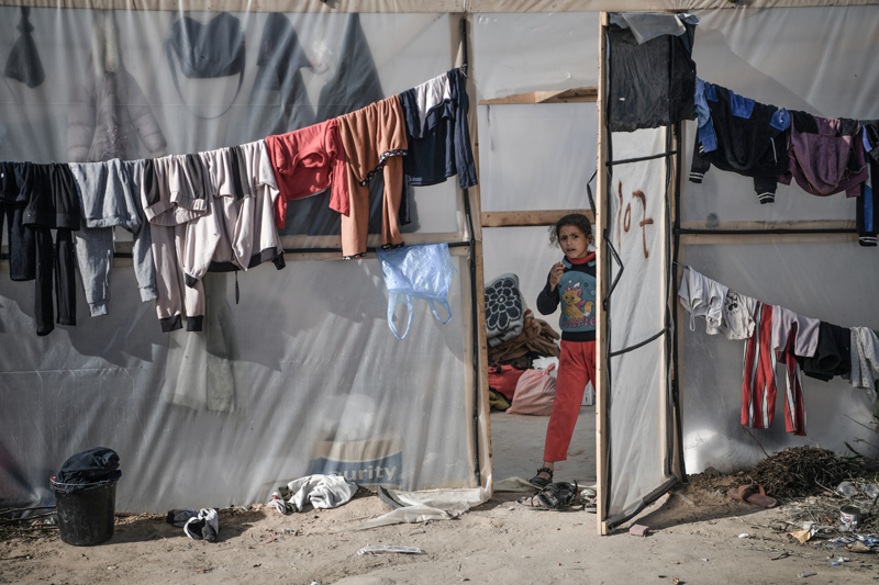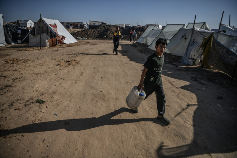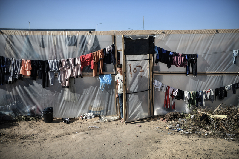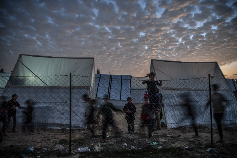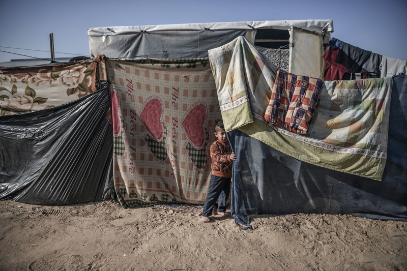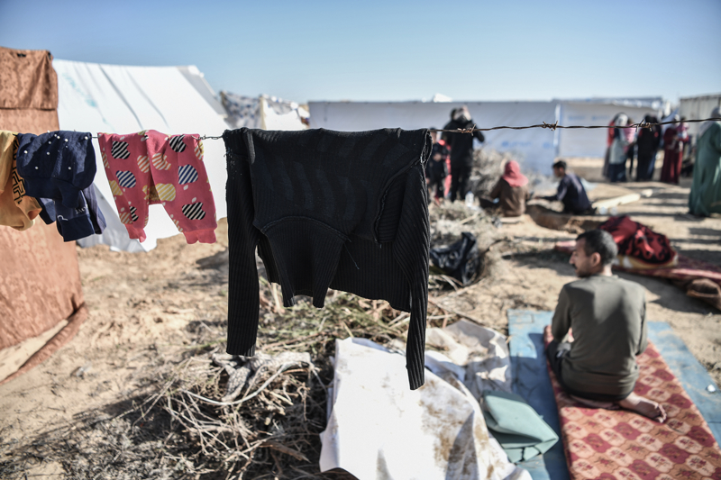 İsrail bombardımanından korunmak ve can güvenliklerini sağlayabilmek için evlerini terk edip Refah kentine sığınan Filistinli aileler, boş arazide kurdukları derme çatma çadırlarda zor şartlar altında yaşamlarını sürdürmeye çalışıyor.