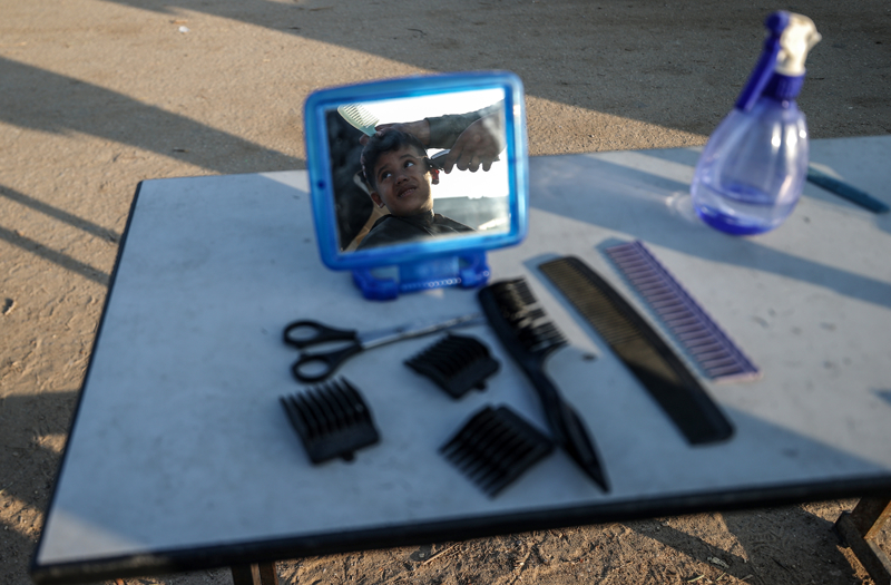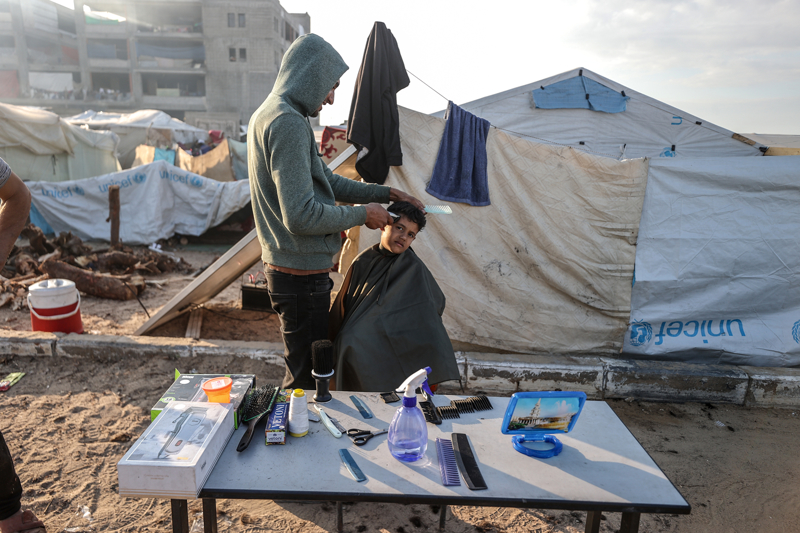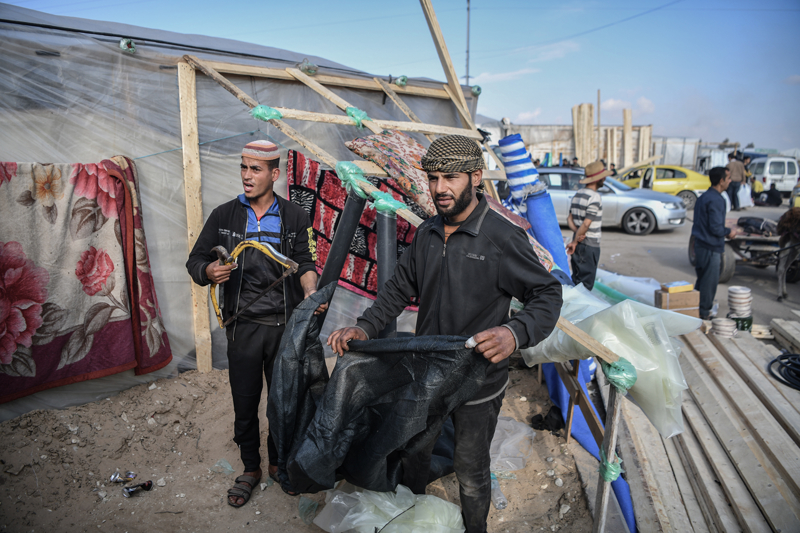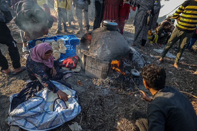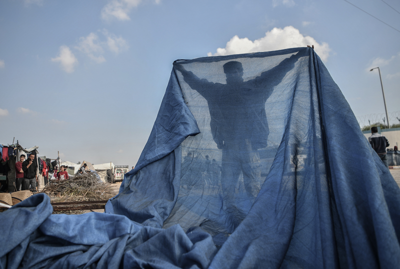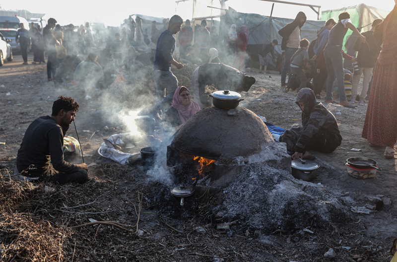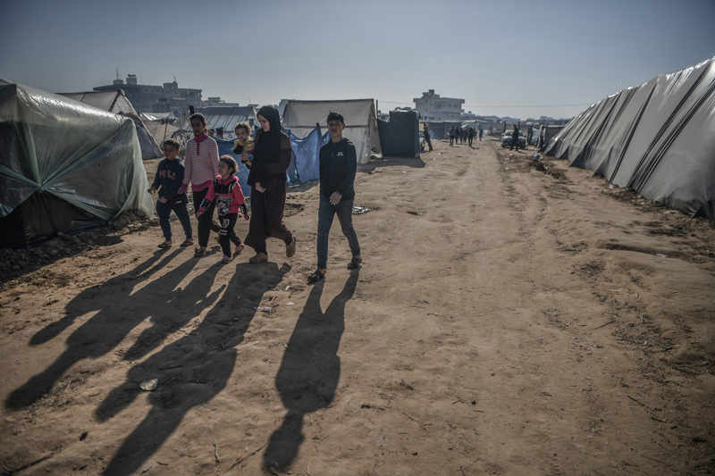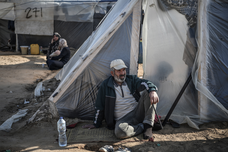 İsrail bombardımanından korunmak ve can güvenliklerini sağlayabilmek için evlerini terk edip Refah kentine sığınan Filistinli aileler, boş arazide kurdukları derme çatma çadırlarda zor şartlar altında yaşamlarını sürdürmeye çalışıyor.