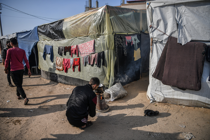 İsrail katliamından kaçan Gazzeliler Refah'ta derme çatma çadırlarda yaşamlarını sürdürüyor