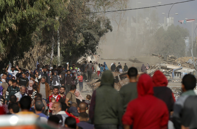 Gazze'nin orta ve kuzey kesimindeki Filistinliler, İsrail askerleri ve tanklar arasından yaya olarak geçerek kentin güney bölgelerine göç etti.