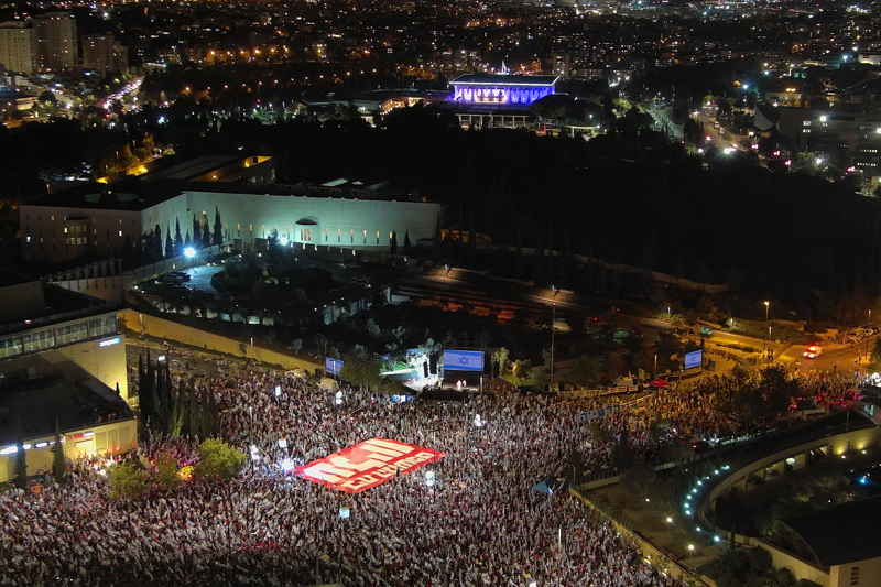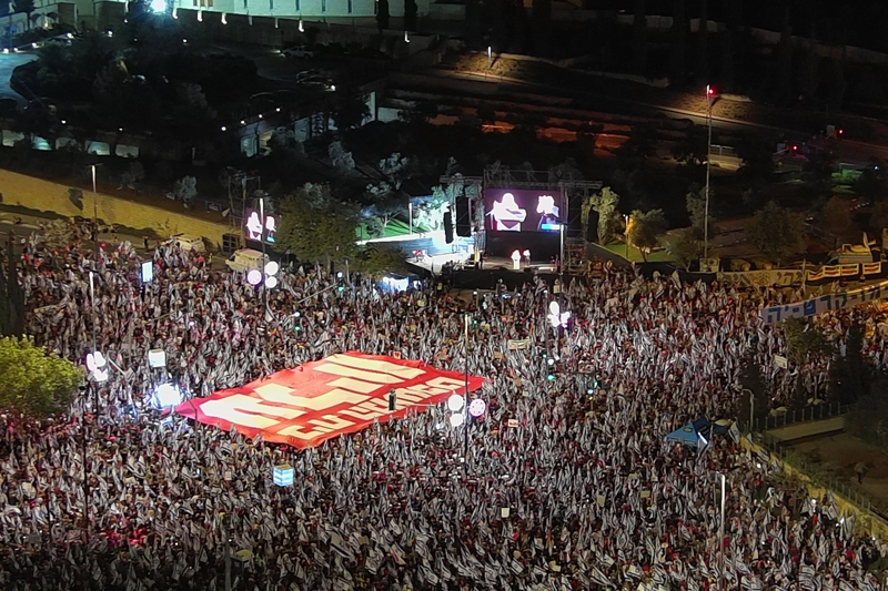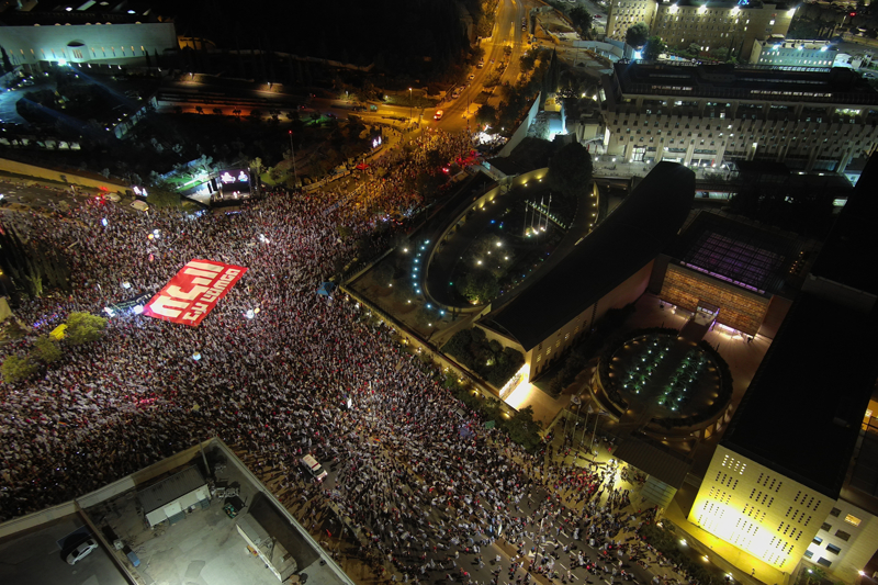 Mahkemenin kararı öncesi Batı Kudüs'teki İsrail Yüksek Mahkemesi binası önünde toplanan İsrailliler, Başbakan Binyamin Netanyahu öncülüğündeki koalisyon hükümetini protesto etti.