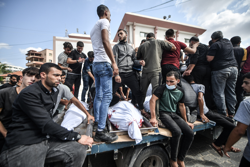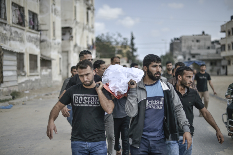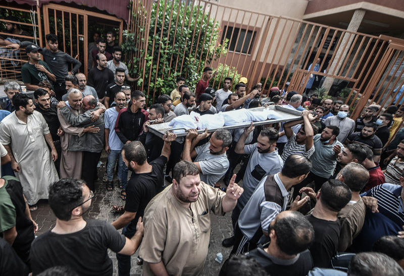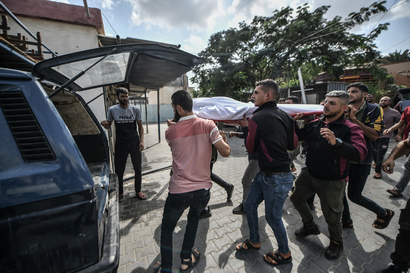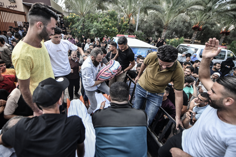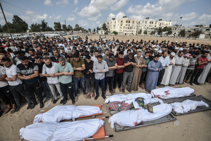 Saldırıda Filistinli gazeteciler Said et-Tavil, Muhammed Subh ve aralarında çocukların da bulunduğu hayatını kaybedenler için Han yunus kentinde cenaze töreni düzenlendi.