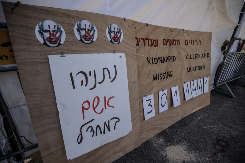 Hamas'ın saldırılarında yakınlarını kaybeden İsrailliler Netanyahu'nun istifası için çadır kurdu.