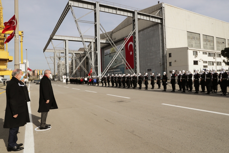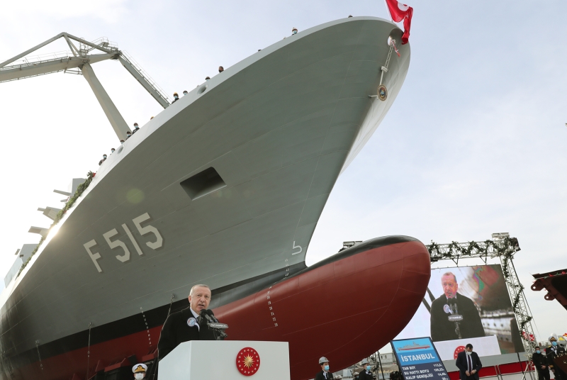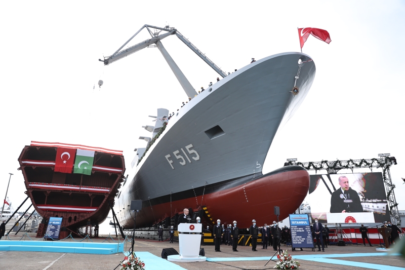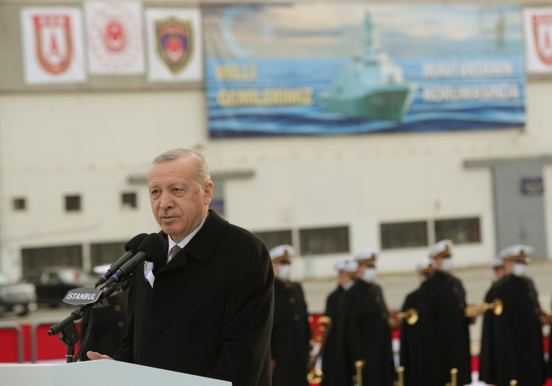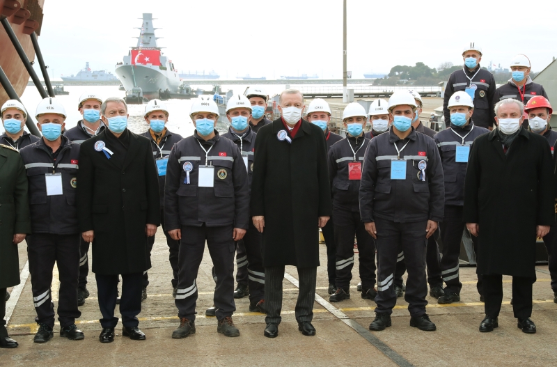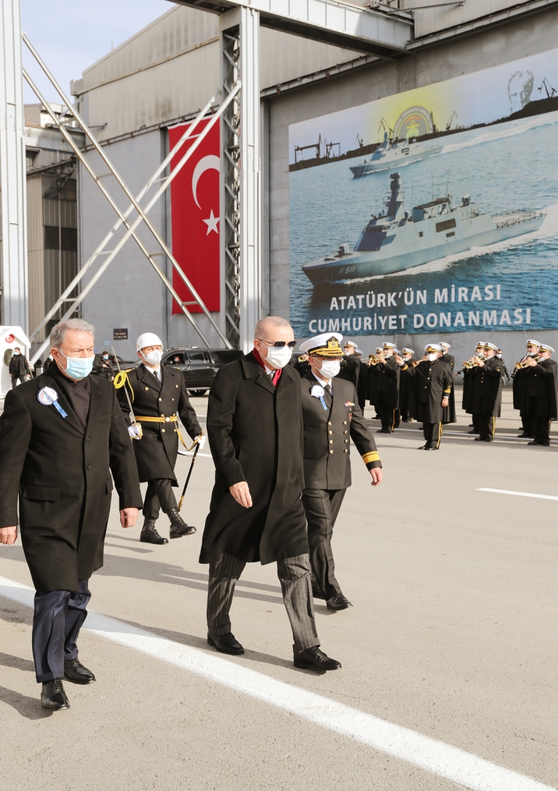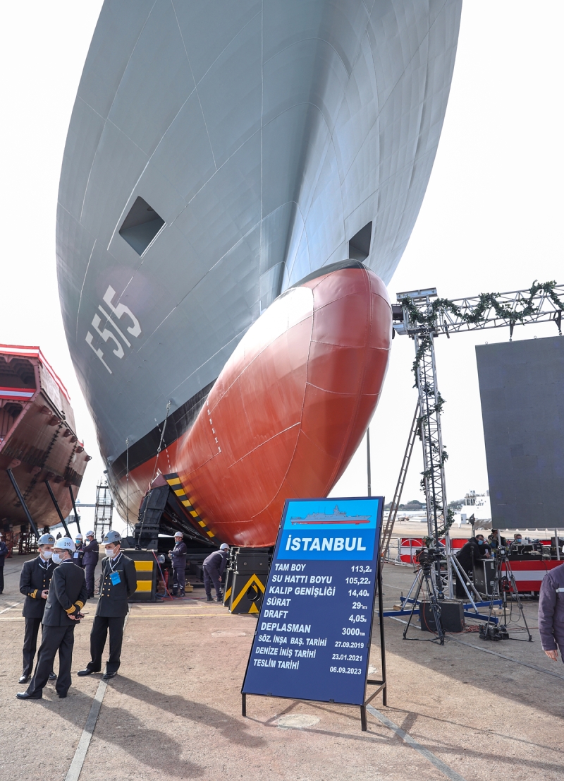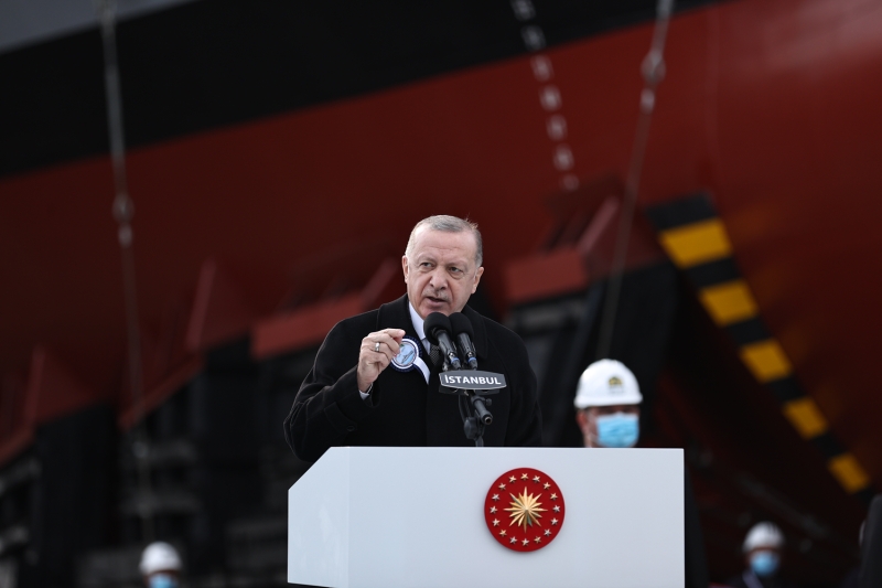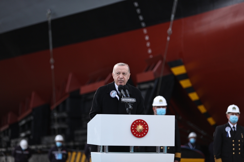 İstanbul Fırkateyni'nin denize indirilme töreninde konuşan Başkan Erdoğan, 'Kendi savaş gemisini tasarlayan, inşa eden ve idamesini gerçekleştirebilen 10 ülke içinde yer alıyoruz. İnsansız hava aracı üretiminde ise ilk üçteyiz.' dedi.