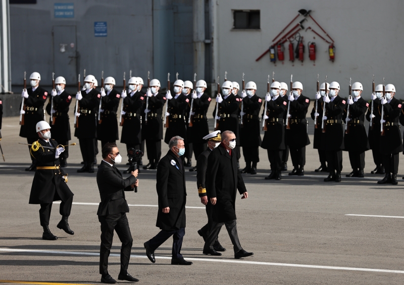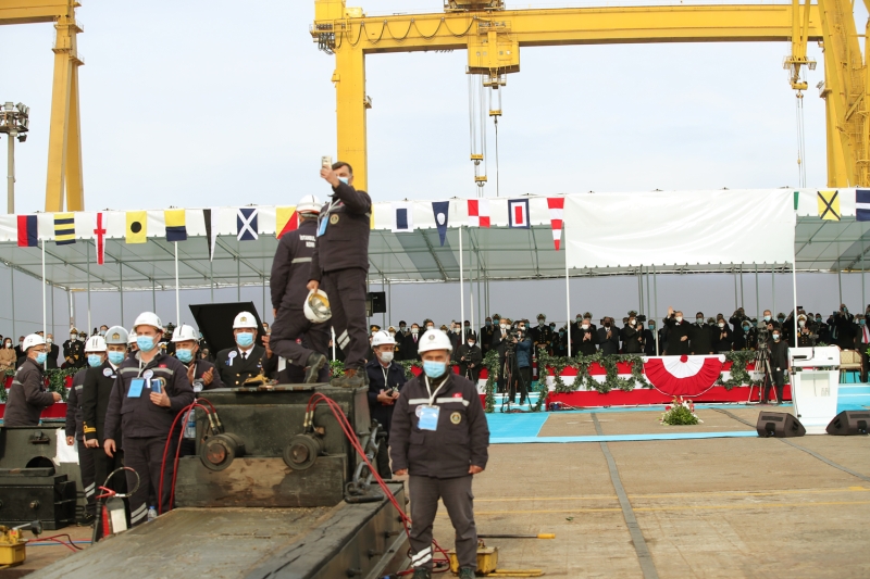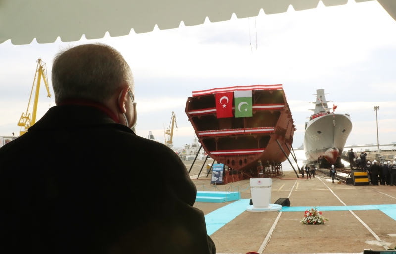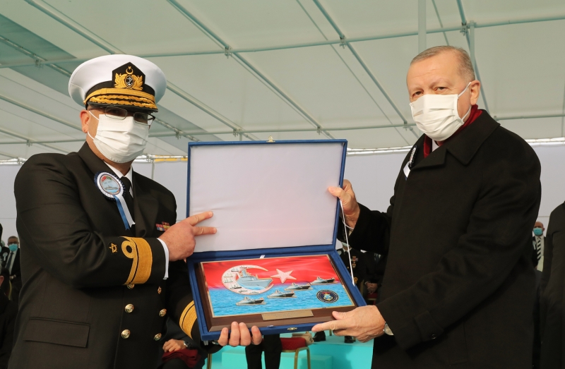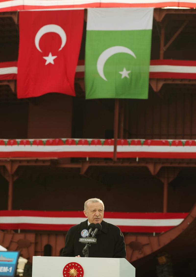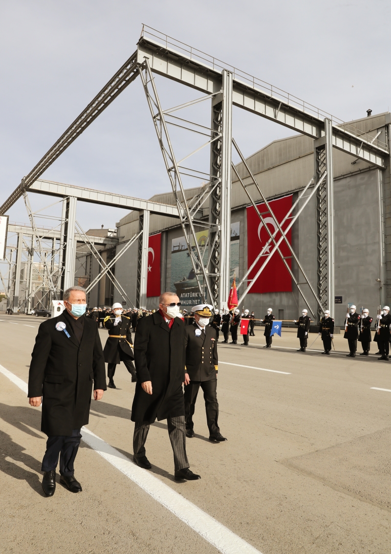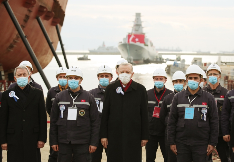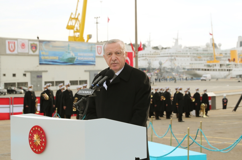 İstanbul Fırkateyni'nin denize indirilme töreninde konuşan Başkan Erdoğan, 'Kendi savaş gemisini tasarlayan, inşa eden ve idamesini gerçekleştirebilen 10 ülke içinde yer alıyoruz. İnsansız hava aracı üretiminde ise ilk üçteyiz.' dedi.