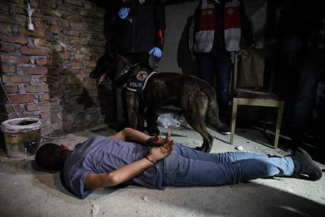 Operasyona kapsamında Fatih Kumkapı Katip Kasım Mahallesi'nde önceden belirlenen birçok adrese baskın yapan polis ekipleri evlerde, dükkanda ve bir otelde aramalar yaptı. Aramalara havadan 'Drone' aracı ve polis helikopteri de destek verdi. Özel eğitimli 2 narkotik köpeğinin de kullanıldığı aramalarda baskın yapılan evlerin çatıları ve bahçeleri didik didik arandı.