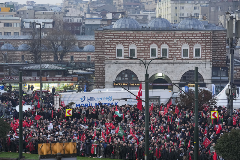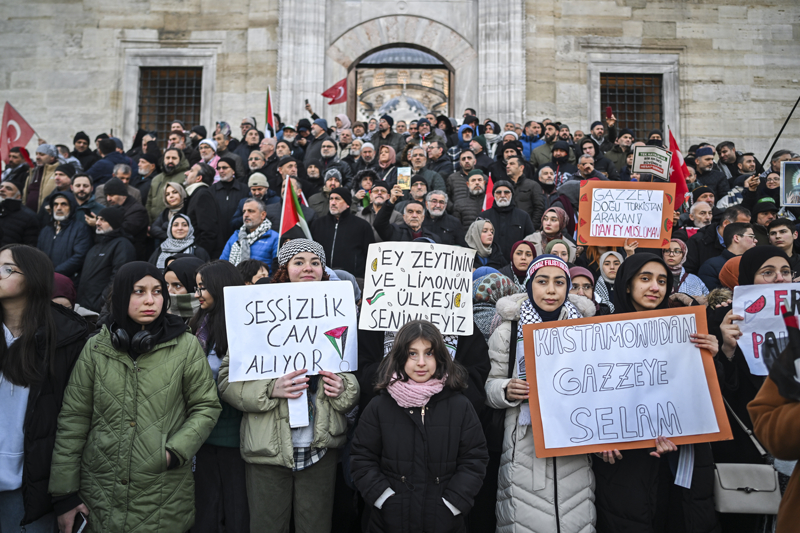 Sık sık tekbir getirerek, 'Katil İsrail hesap verecek', 'Şehitler ölmez', 'İstanbul'dan Aksa'ya direnişe bin selam' sloganları atan katılımcılar Galata Köprüsü'ne ulaştı.