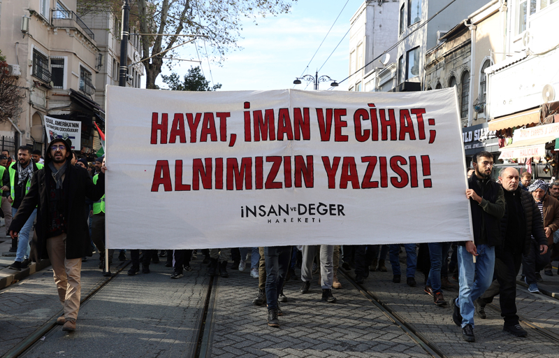 İnsan Hak ve Hürriyetleri (İHH) İnsani Yardım Vakfı, İnsan Hakları ve Mazlumlar İçin Dayanışma Derneği (MAZLUMDER), İnsan ve Medeniyet Hareketi, Medeniyet Vakfı, İstikamet Vakfı, İnsan ve Değer Hareketi, Ümran Kültür ve Medeniyet Hareketince organize edilen yürüyüşe katılanlar, öğlen saatlerinde Beyazıt Meydanı'nda toplandı.